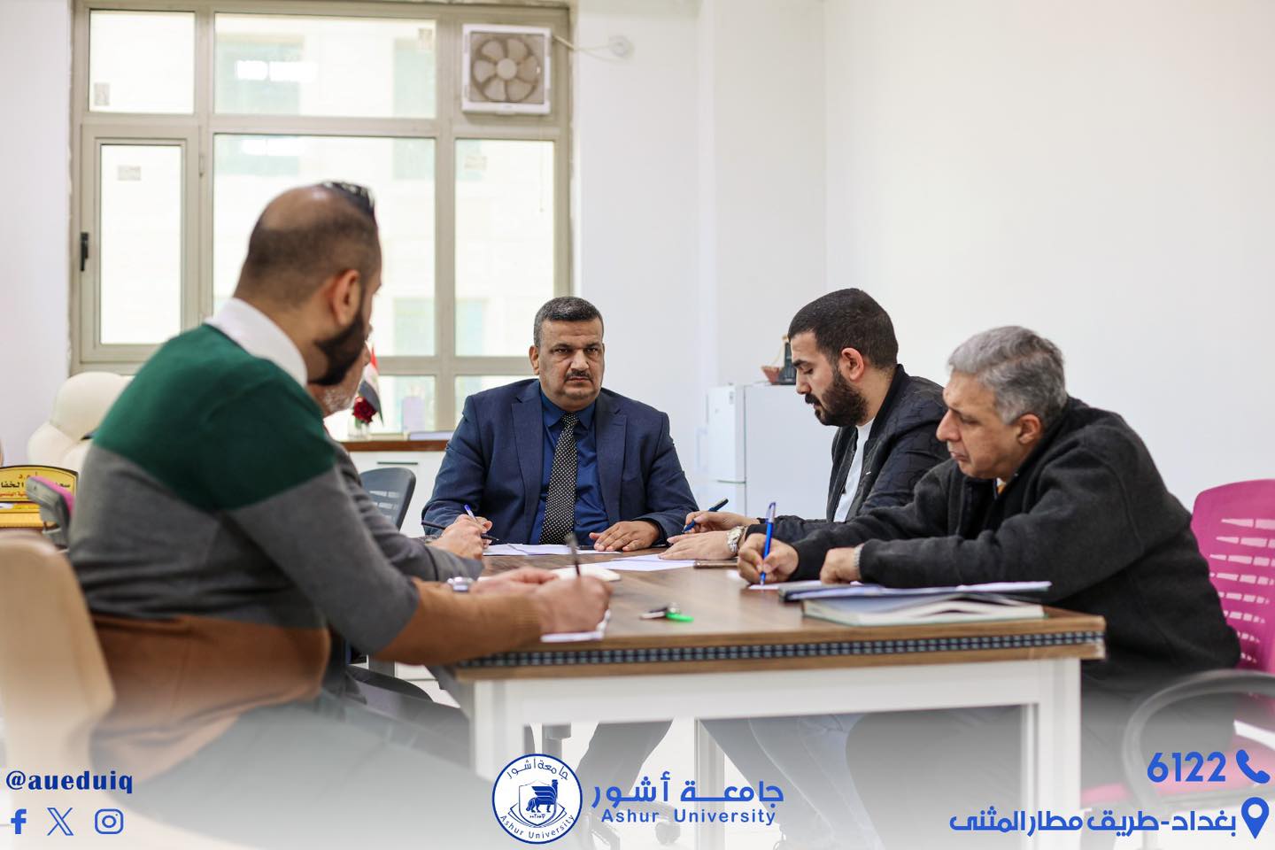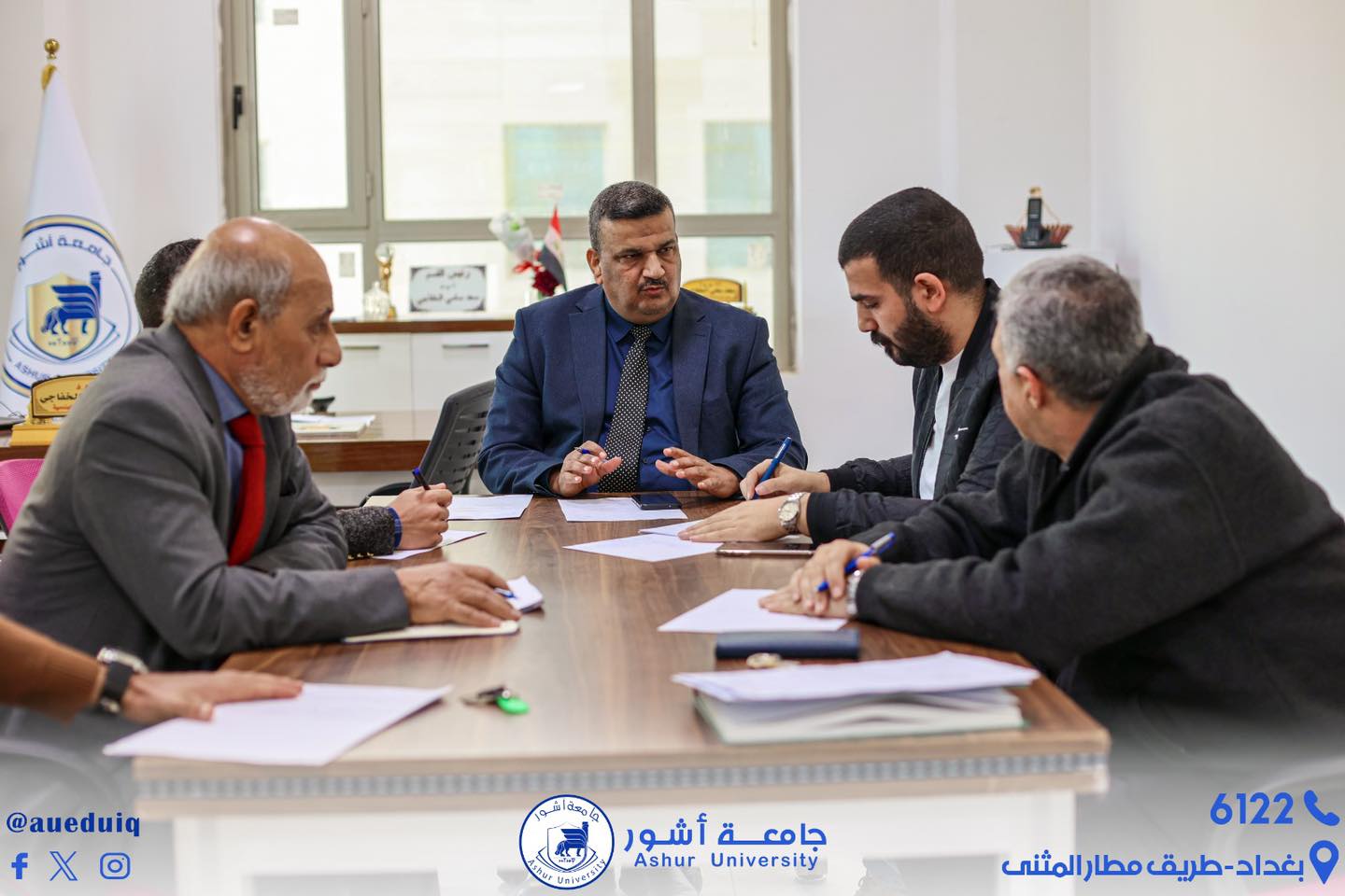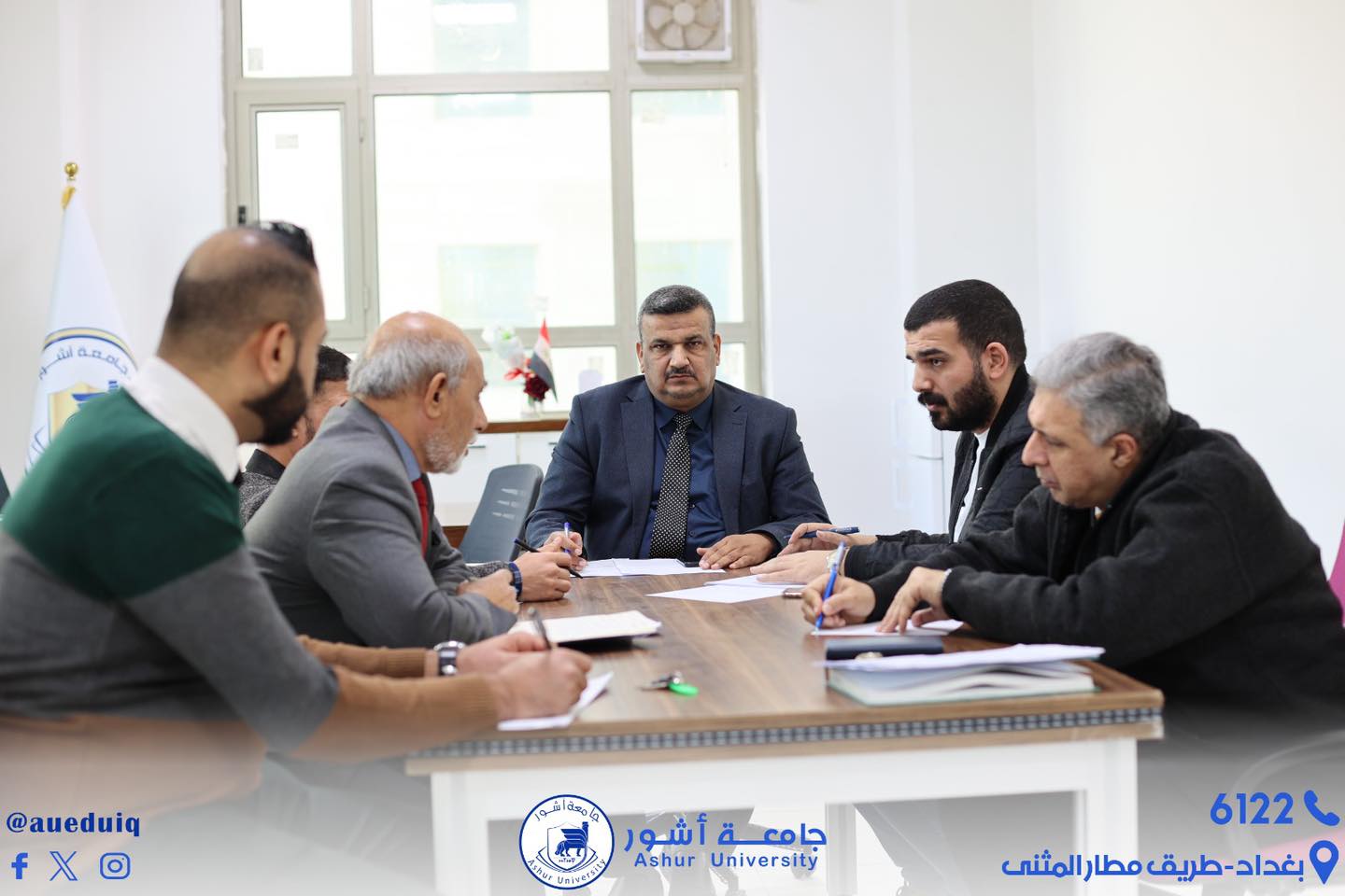 The Council of the College of Technical Engineering at Assyria University held its first session for the academic year 2023-2024 this day, Sunday 1/14/2024, headed by Assistant Professor Dr. Saad Sami Al-Khafaji, Dean of the College, and in the presence of the heads of technical engineering departments and the official of the Quality Assurance Division in the college. The meeting began by welcoming the members of the College Council. Reviewing the directives of the esteemed President of the University, the meeting discussed the topics included in the agenda and emphasized the necessity of following up on the completion of the academic curricula according to the university calendar announced by the Ministry and the necessity of following up on the implementation of the academic program according to the Bologna Pathway for the first stages of the engineering departments covered by the system of implementing the Bologna Pathway system starting from the academic year. The Council also discussed developing scientific laboratories, providing all supplies, and urging teachers to publish scientific research in international journals, in addition to discussing matters related to student affairs.