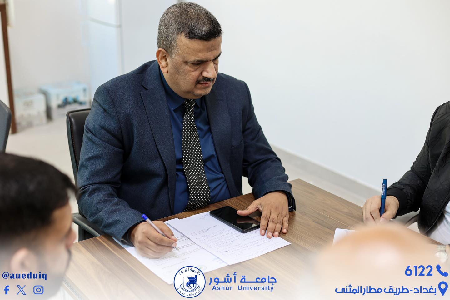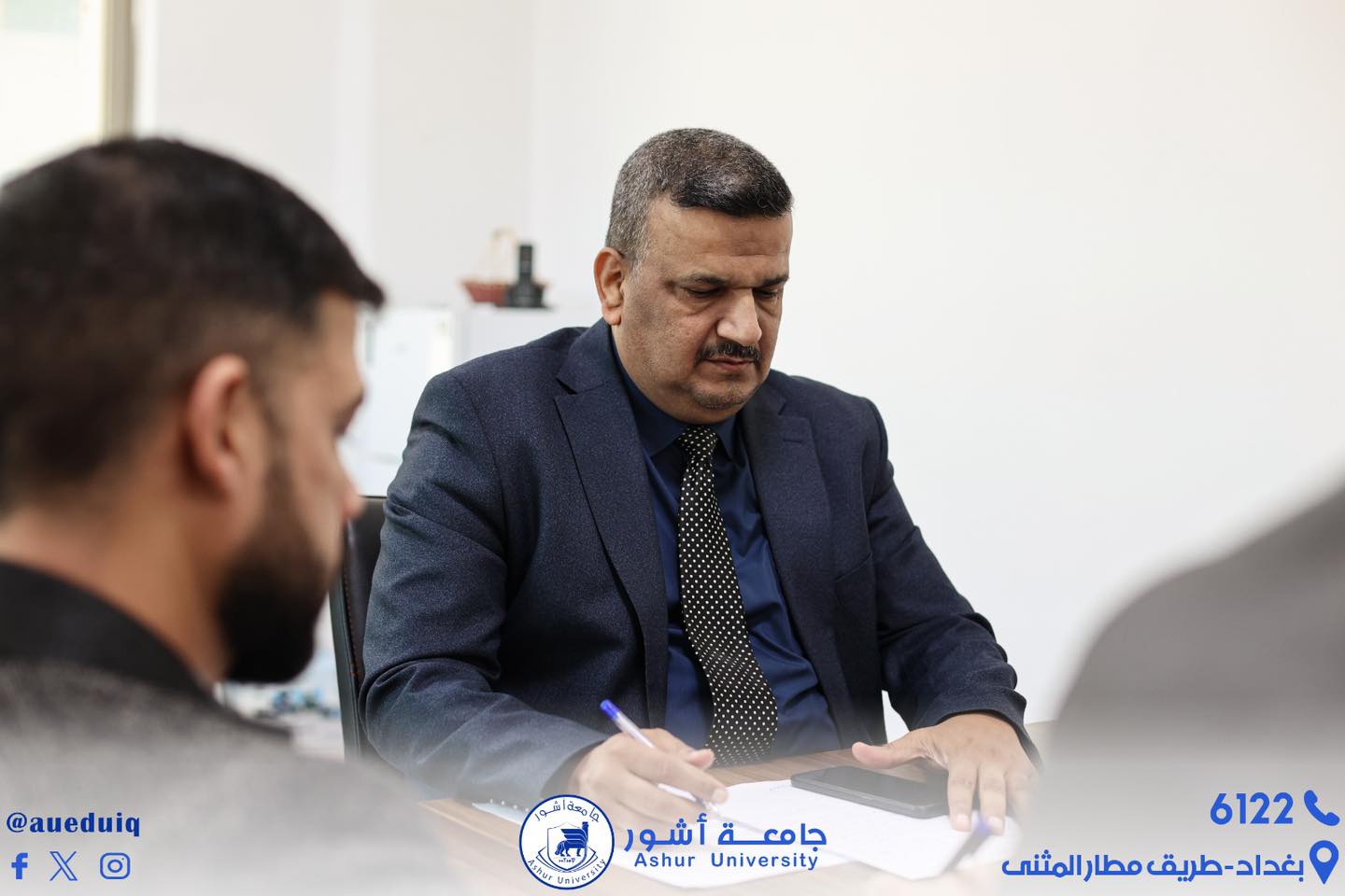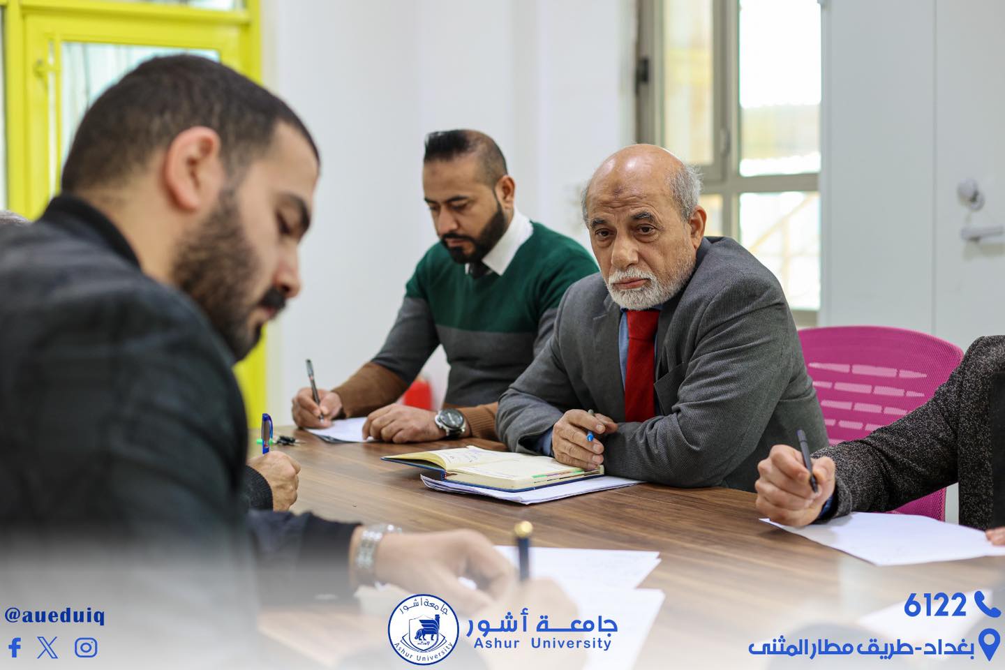 The Council of the College of Technical Engineering at Assyria University held its first session for the academic year 2023-2024 this day, Sunday 1/14/2024, headed by Assistant Professor Dr. Saad Sami Al-Khafaji, Dean of the College, and in the presence of the heads of technical engineering departments and the official of the Quality Assurance Division in the college. The meeting began by welcoming the members of the College Council. Reviewing the directives of the esteemed President of the University, the meeting discussed the topics included in the agenda and emphasized the necessity of following up on the completion of the academic curricula according to the university calendar announced by the Ministry and the necessity of following up on the implementation of the academic program according to the Bologna Pathway for the first stages of the engineering departments covered by the system of implementing the Bologna Pathway system starting from the academic year. The Council also discussed developing scientific laboratories, providing all supplies, and urging teachers to publish scientific research in international journals, in addition to discussing matters related to student affairs.