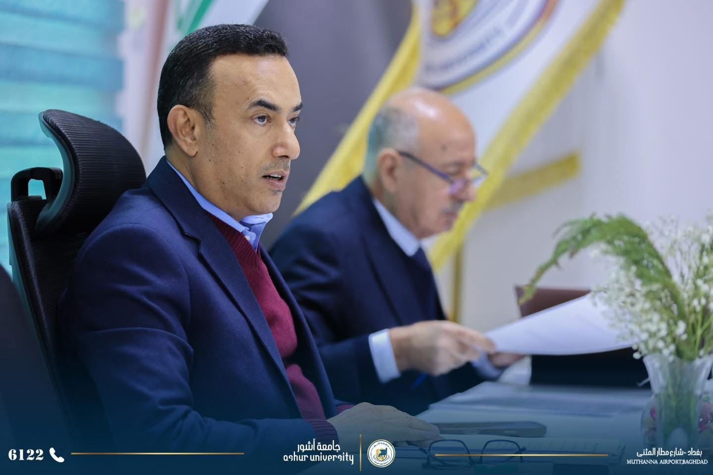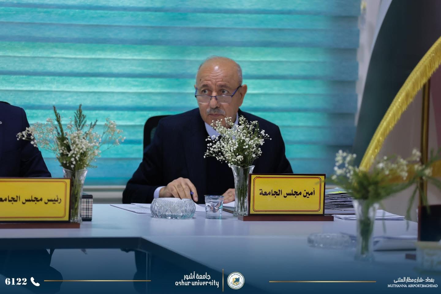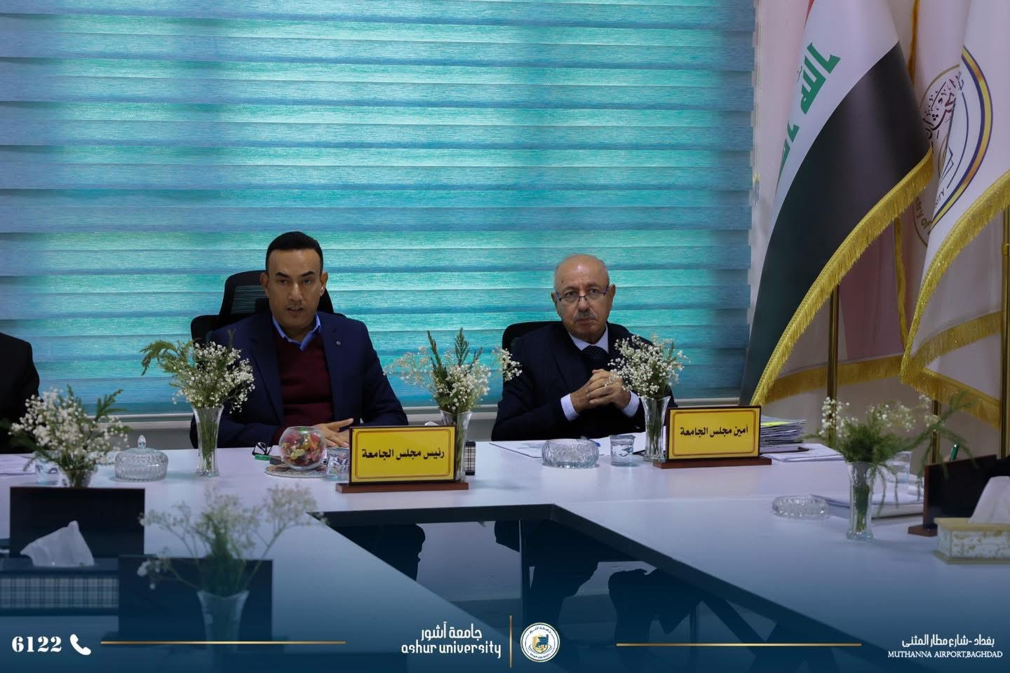 The Ashur University Council held its third session for the 2025-2026 academic year, chaired by the University President, Professor Dr. Kadhim Aboud Al-Majidi, and attended by the esteemed members of the Council.