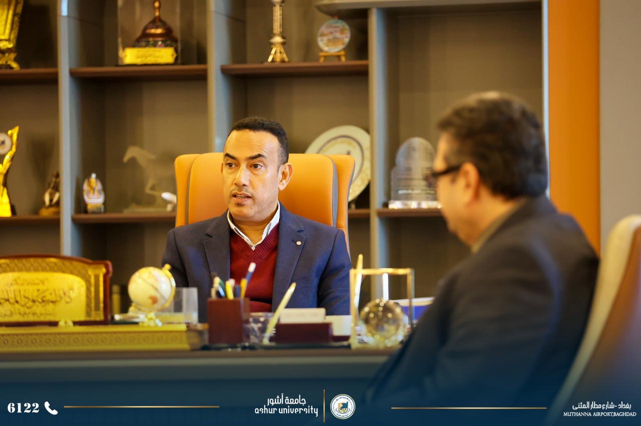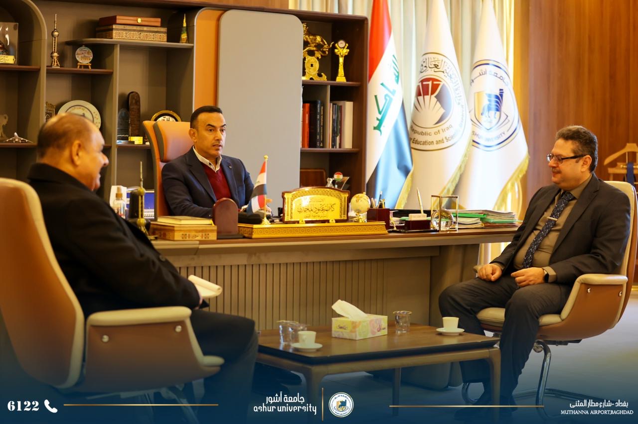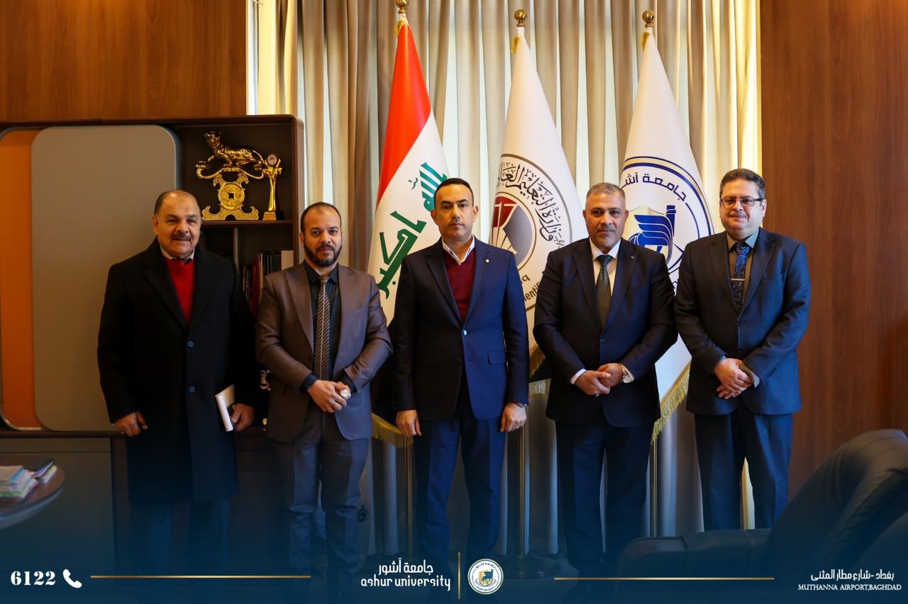وفد من جامعة الفرات الأوسط، وذلك للتباحث في الشؤون العلمية والإدارية، وللاستفادة من موضوعات العمل وآليات تطويرها، وكيفية إنجاز أفضل على مستوى التعليم العالي
