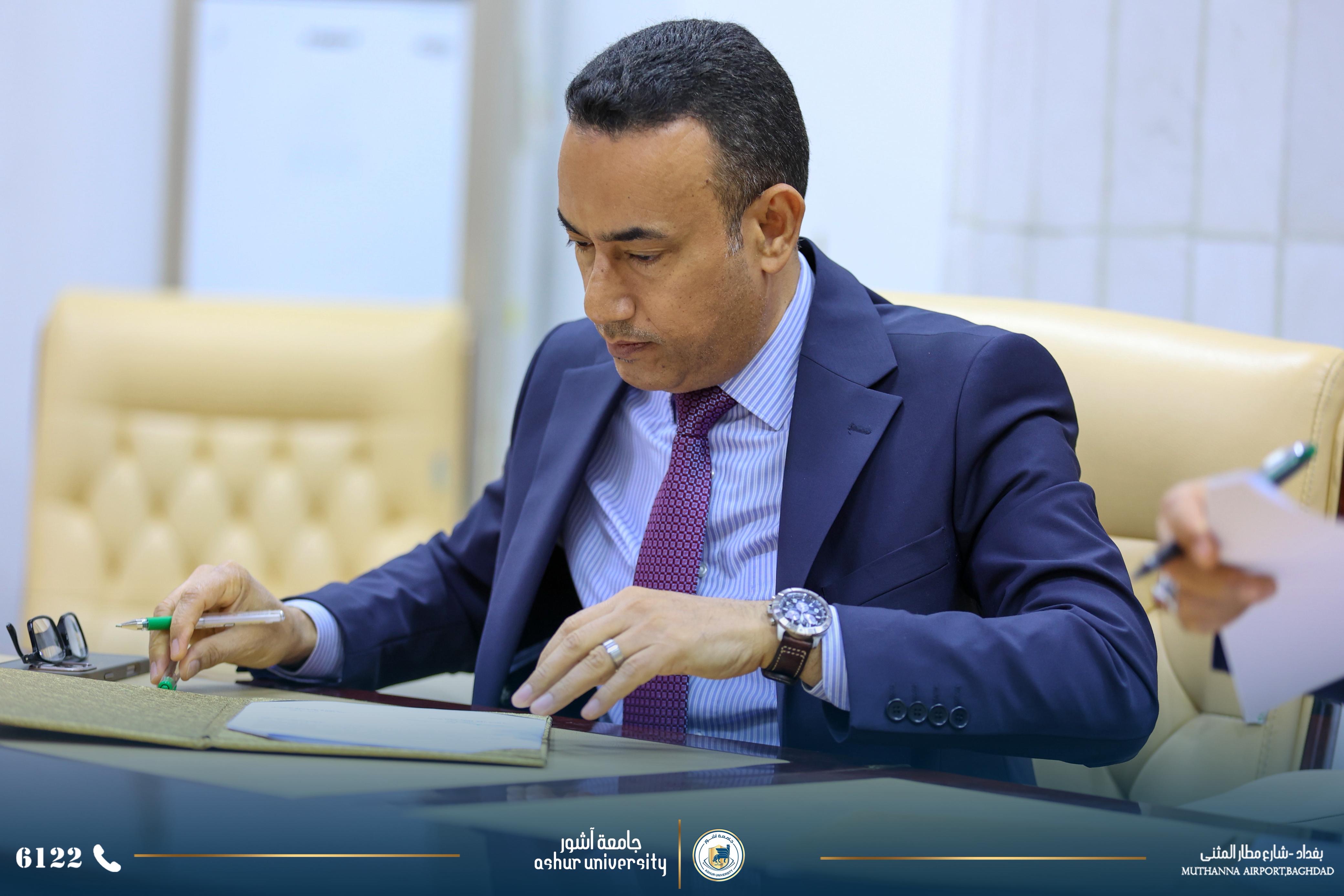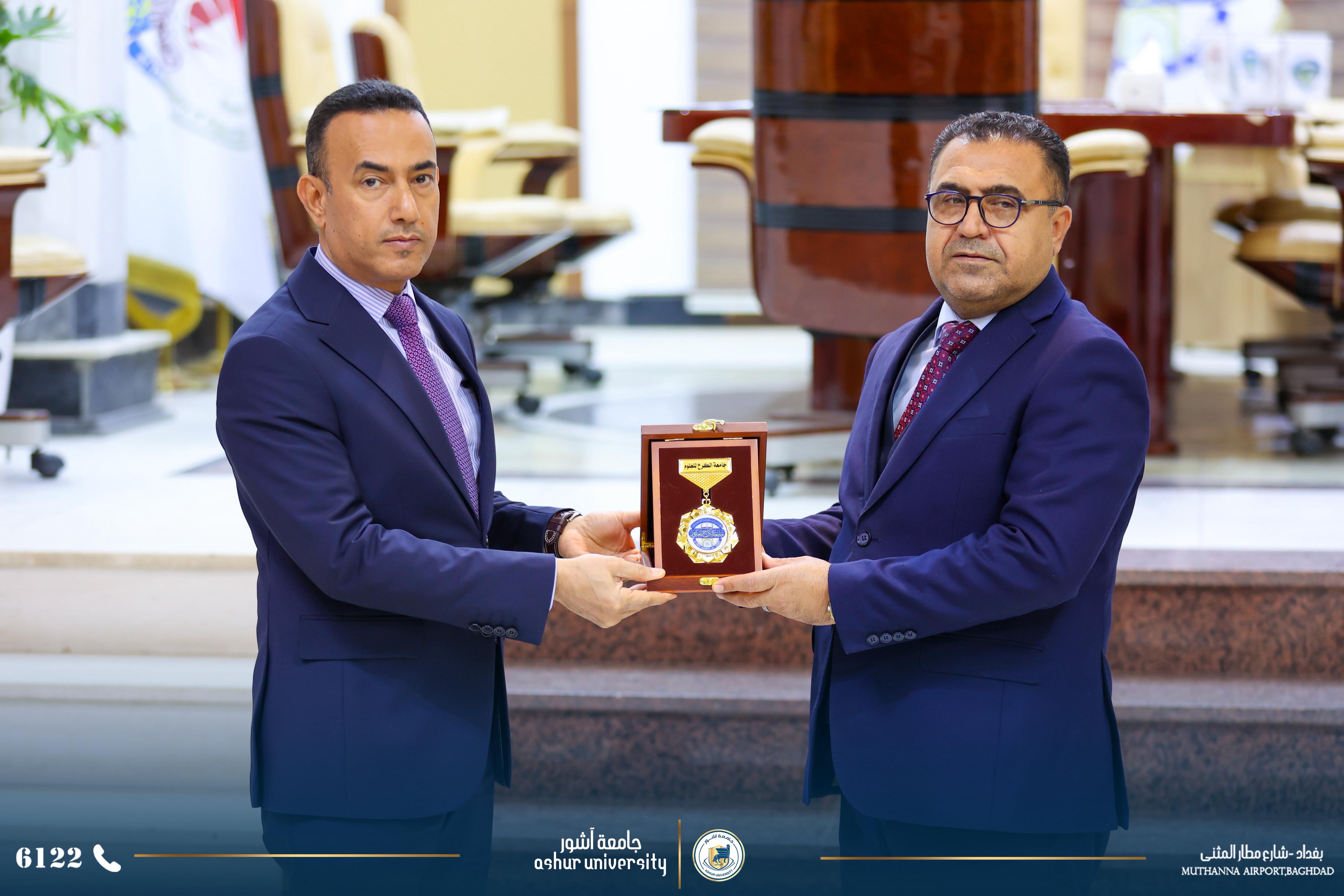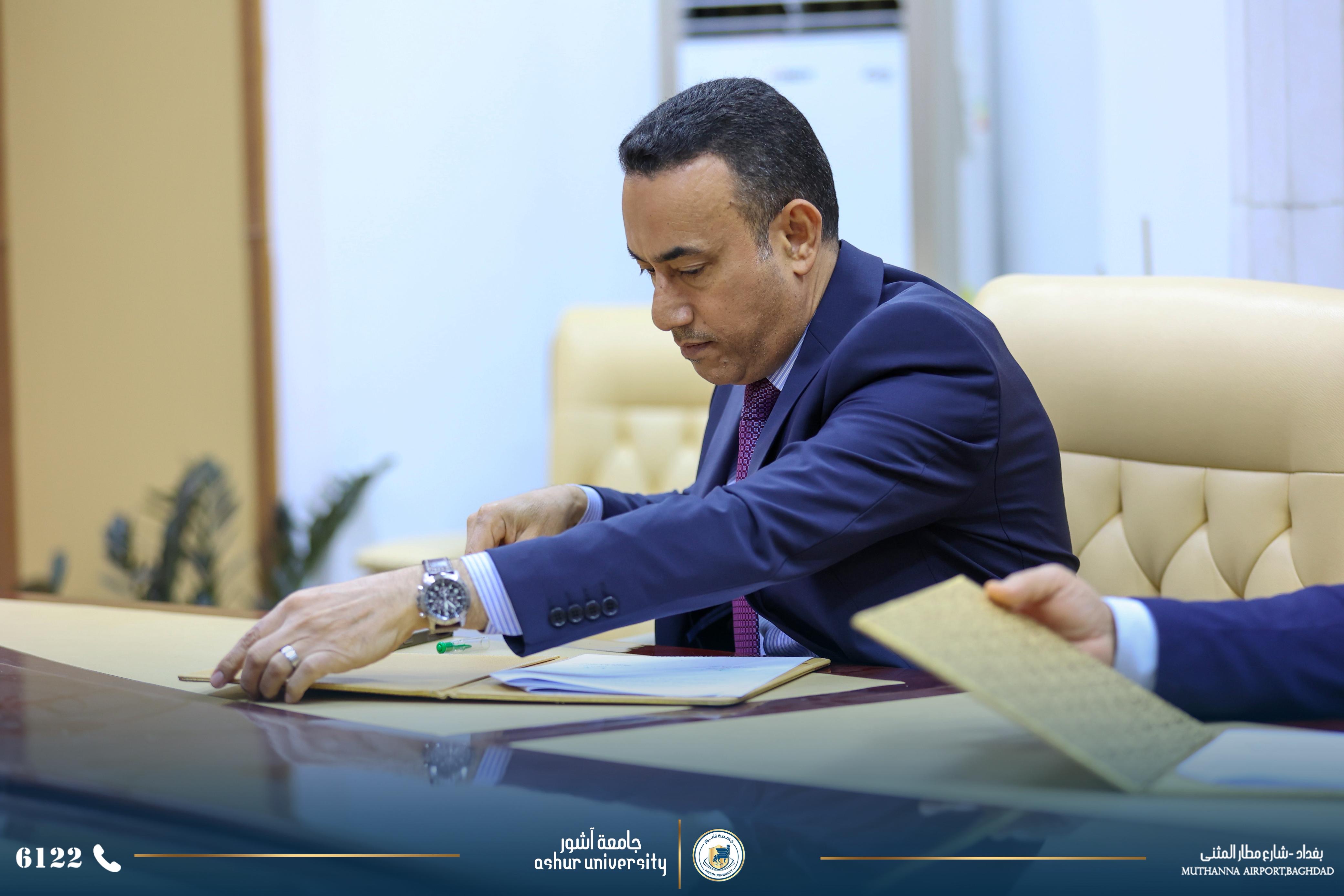 من اجل زيادة أواصر التعاون العلمي والأكاديمي والبحثي وفتح آفاق تعاون جدي لرفع المستوى العلمي والبحثي والارتقاء بهما لخدمة الكوادر التدريسية وطلبة الجامعتين فقد تم اليوم الخميس الموافق ٢٠٢٦/٣/٥ توقيع اتفاقية تعاون وتوأمة بين الجامعتين الاولى ووقعت بين السيد رئيس جامعة آشور الاستاذ الدكتور كاظم عبود الماجدي المحترم ورئيس جامعة الكرخ للعلوم الاستاذ الدكتور جمعة سلمان جياد المحترم . والثانية (للتوئمه ) وقد وقعت بين كليتي الهندسة ،قسم هندسة الأمن السيبراني في الجامعتين كل من الأستاذ الدكتور جمعة سلمان جياد عميد كلية الهندسة في جامعة الكرخ (وكالة ) والاستاذ الدكتور علي حسين عتيوي عميد كلية الهندسة في جامعة آشور. حضر توقيع الاتفاقيتين السادة مساعدي رئيسي الجامعتين للشؤون العلمية وعدد من عمداء الكليات ورؤساء الاقسام .وكان السيد رئيس جامعة الكرخ للعلوم بأستقبال وفد جامعة آشور مرحبا بهم وشاكرا زيارتهم .وأثناء اللقاء وقبل توقيع الاتفاقيتين تحدث السيد رئيس جامعة آشور المحترم عن التطور الكبير الذي حصل في جامعة آشور وخلال فترة قصيرة من عمر تأسيس الجامعة والذي توج بأفتتاح كلية الطب والتي هي الوحيدة في بغداد ضمن الجامعات والكليات الأهلية .إضافة إلى بناء مستشفى آشور التعلمي الذي يضم ٤٠٠ سرير إضافة إلى عدد كبير من صالات العمليات، وتم تجهيزه بأحدث الأجهزة الطبية ومن مناشئ عالمية .كما تحدث السيد رئيس الجامعة المحترم عن التطور العلمي والأكاديمي من خلال استقطاب افضل الاساتذه أصحاب الألقاب العلمية العالية ومن مختلف الاختصاصات وهذا مما جعل عدد كبير من الطلبة يسارعون للتسجيل فيها ومن جميع المحافظات .