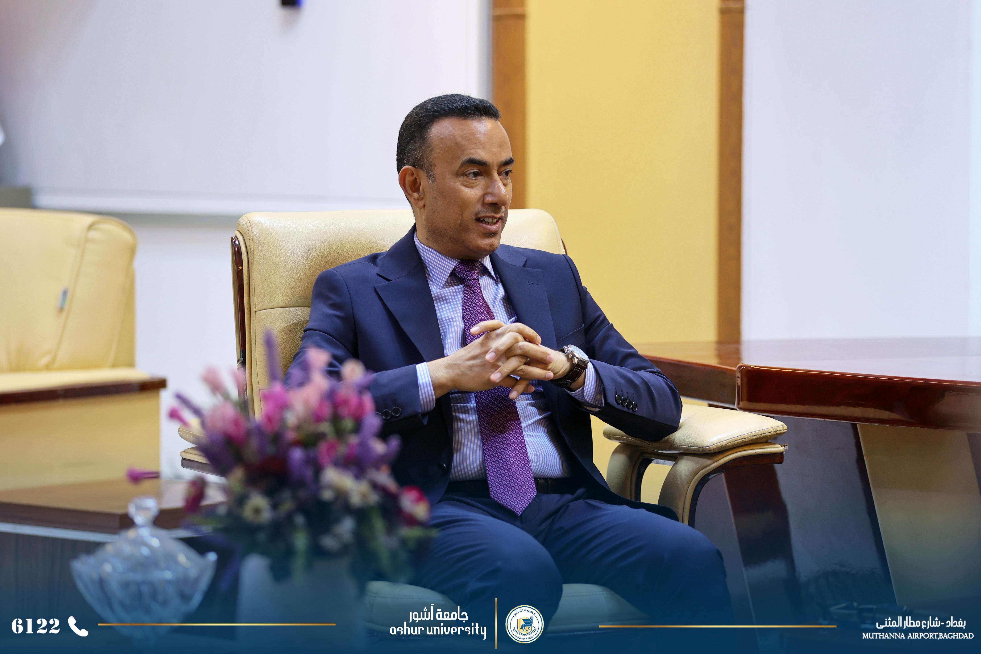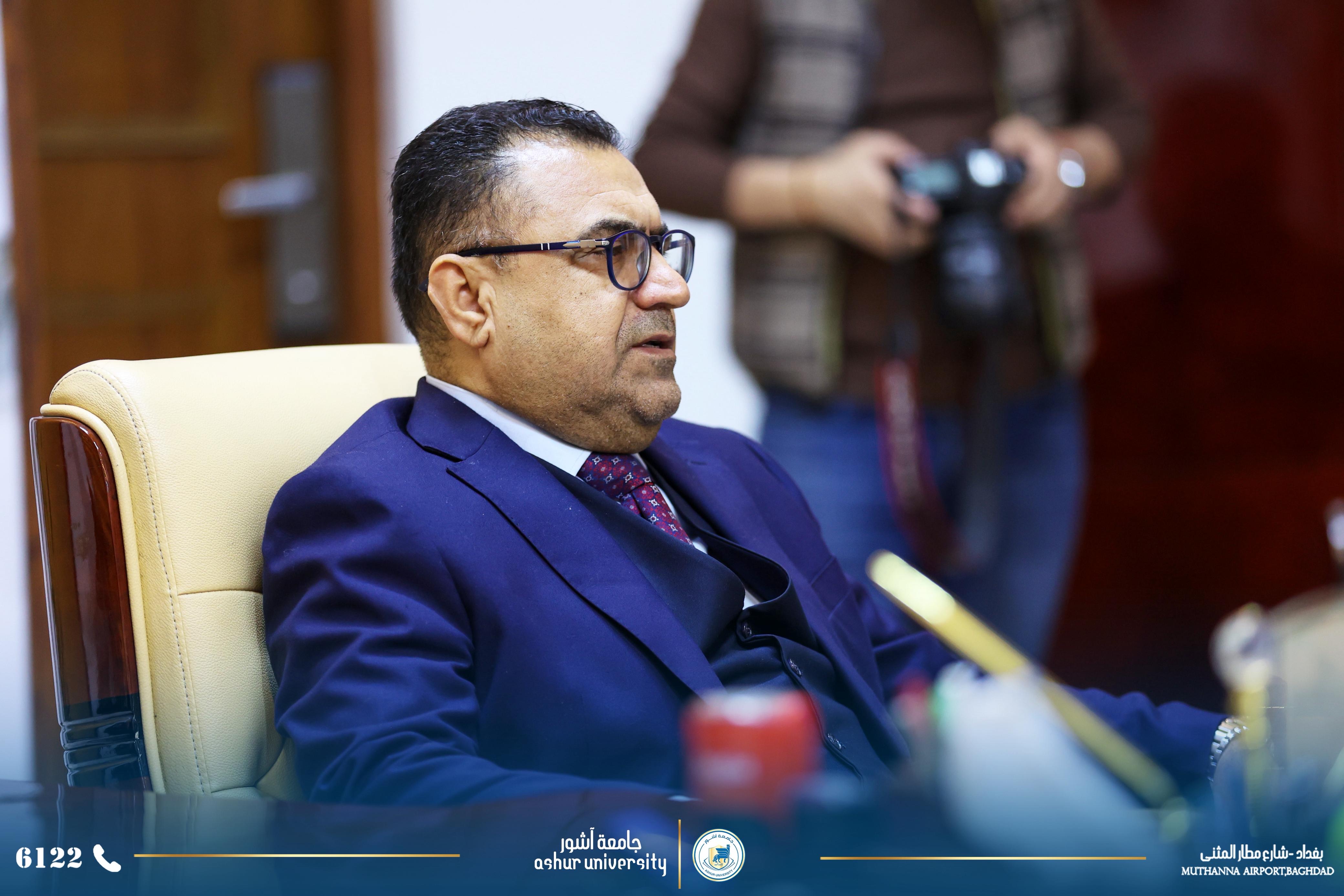 من جانبه شكر السيد رئيس جامعة الكرخ للعلوم السيد رئيس جامعة آشور والوفد المرافق لحضورهم والثقة العالية التي توليها جامعة آشور بجامعة الكرخ .وقد أشاد السيد رئيس جامعة الكرخ للعلوم بالتطور الكبير الذي حصل في جامعة آشور خلال فترة قصيرة وهذا التطور لم يأتي من فراغ وانما بفضل الخبرة العلمية ولادارة الناجحة للاستاذ الدكتور كاظم عبود الماجدي رئيس الجامعة .واخيرا تمنى السيد رئيس جامعة الكرخ للعلوم المزيد من التطور العلمي والأكاديمي لجامعة آشور وأبدى تعاونه في جميع المجالات بين الجامعتين . من جانبه شكر الاستاذ الدكتور كاظم الماجدي السيد رئيس جامعة الكرخ على حسن الاستقبال والتعاون .