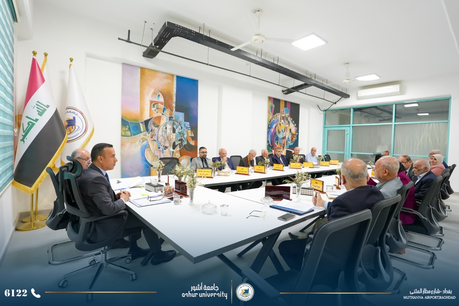 برئاسة الاستاذ الدكتور كاظم عبود الماجدي المحترم وحضور السادة اعضاء مجلي الجامعة المحترمين