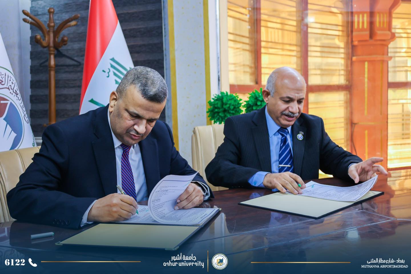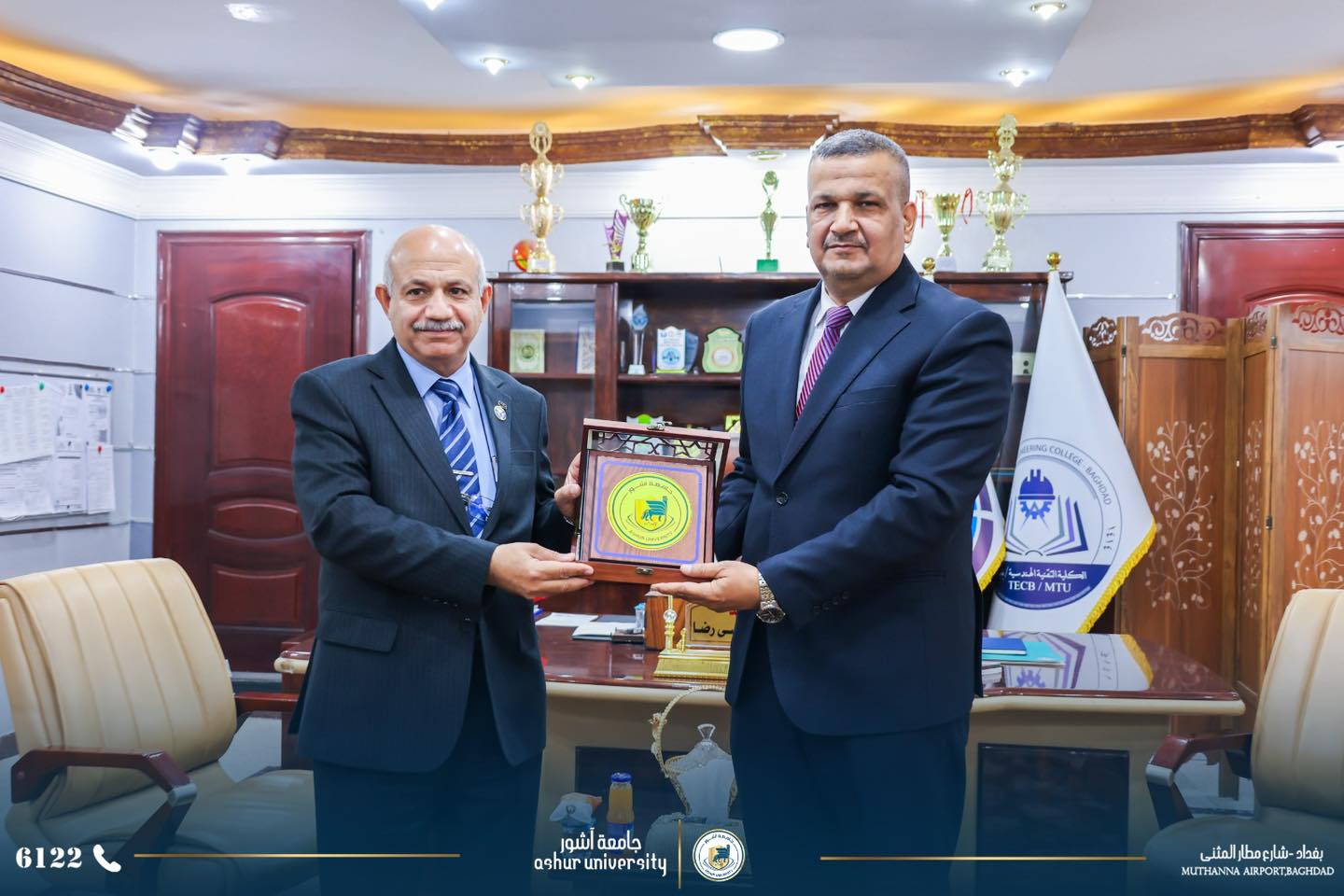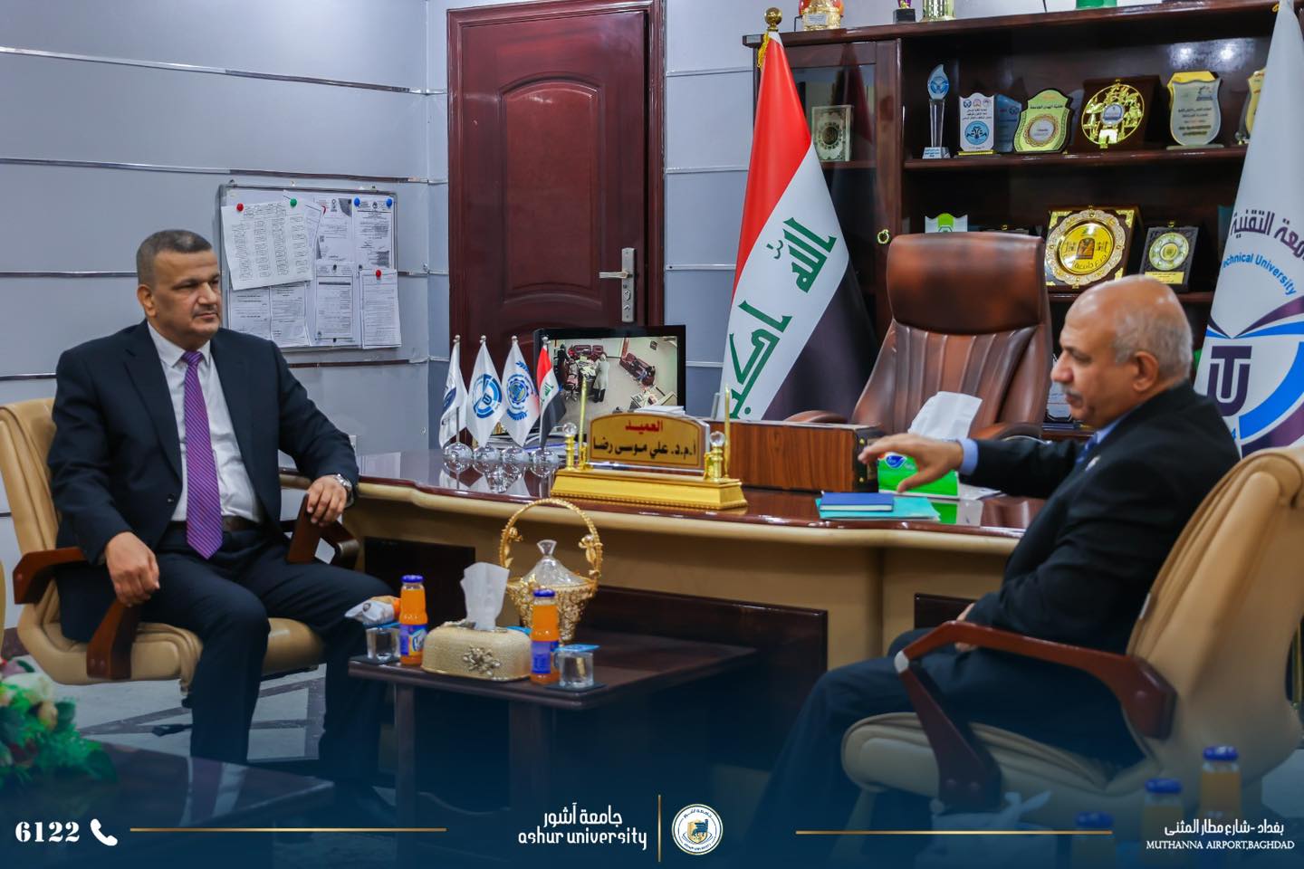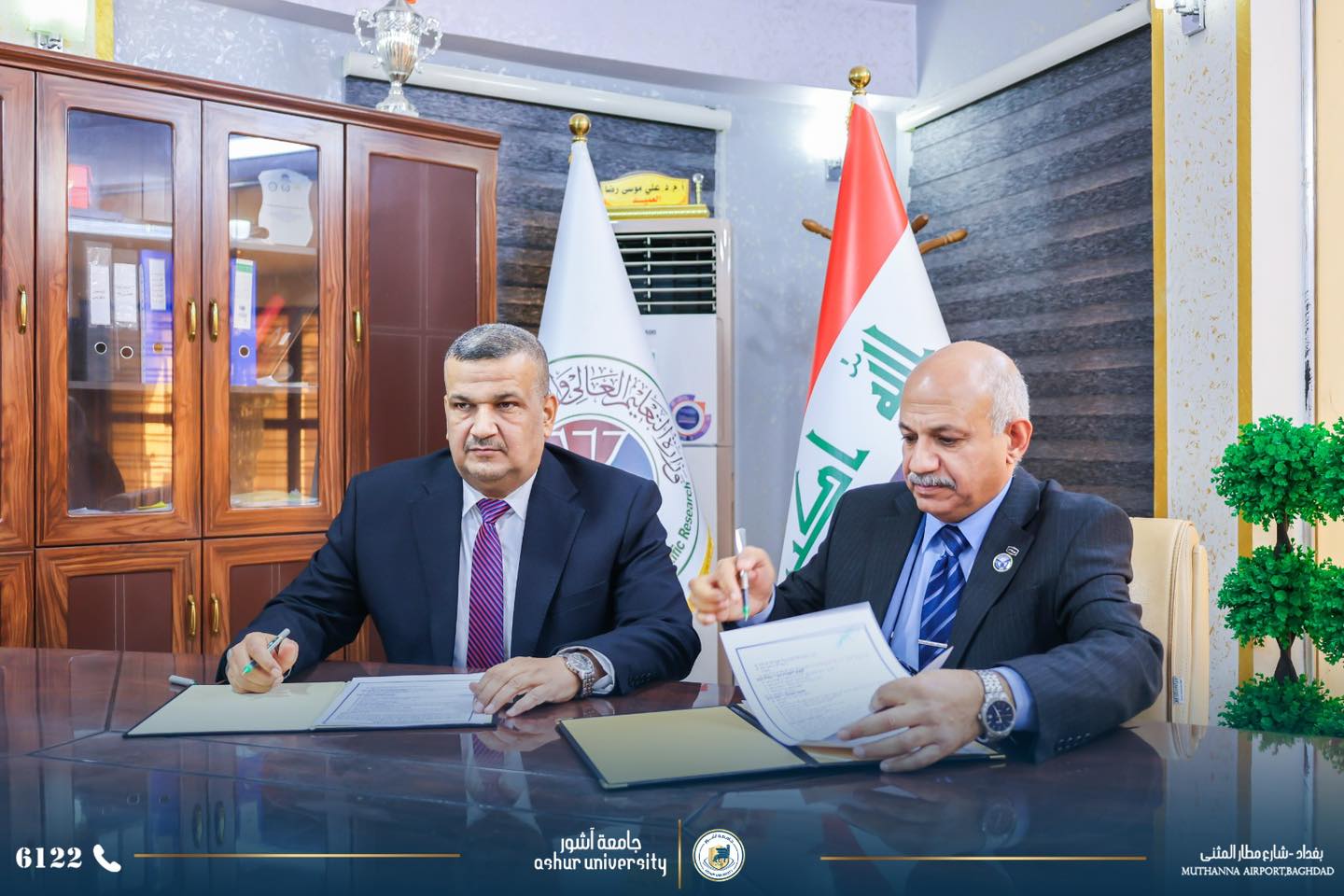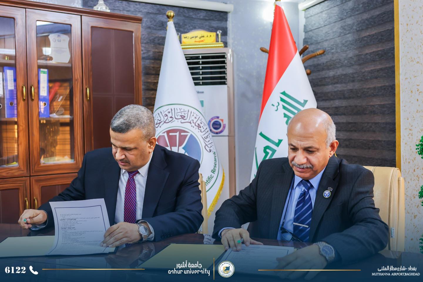 Under the supervision of the University President, Professor Dr. Kadhim Aboud Al-Majidi, a twinning and scientific cooperation agreement was signed today, Monday, January 19, 2026, between the College of Engineering Technology at the University and the College of Engineering Technology in Baghdad/Middle Technical University. The agreement was signed by Professor Dr. Saad Sami Al-Khafaji, Dean of the College of Engineering Technology, and Assistant Professor Dr. Ali Musa Redha, Dean of the College of Engineering Technology in Baghdad, in the presence of the Assistant Dean for Scientific Affairs, department heads, and rapporteurs. The agreement aims to enhance scientific and research cooperation to serve the educational process in both colleges, based on the Ministry's directives regarding the adoption of twinning principles with public universities.