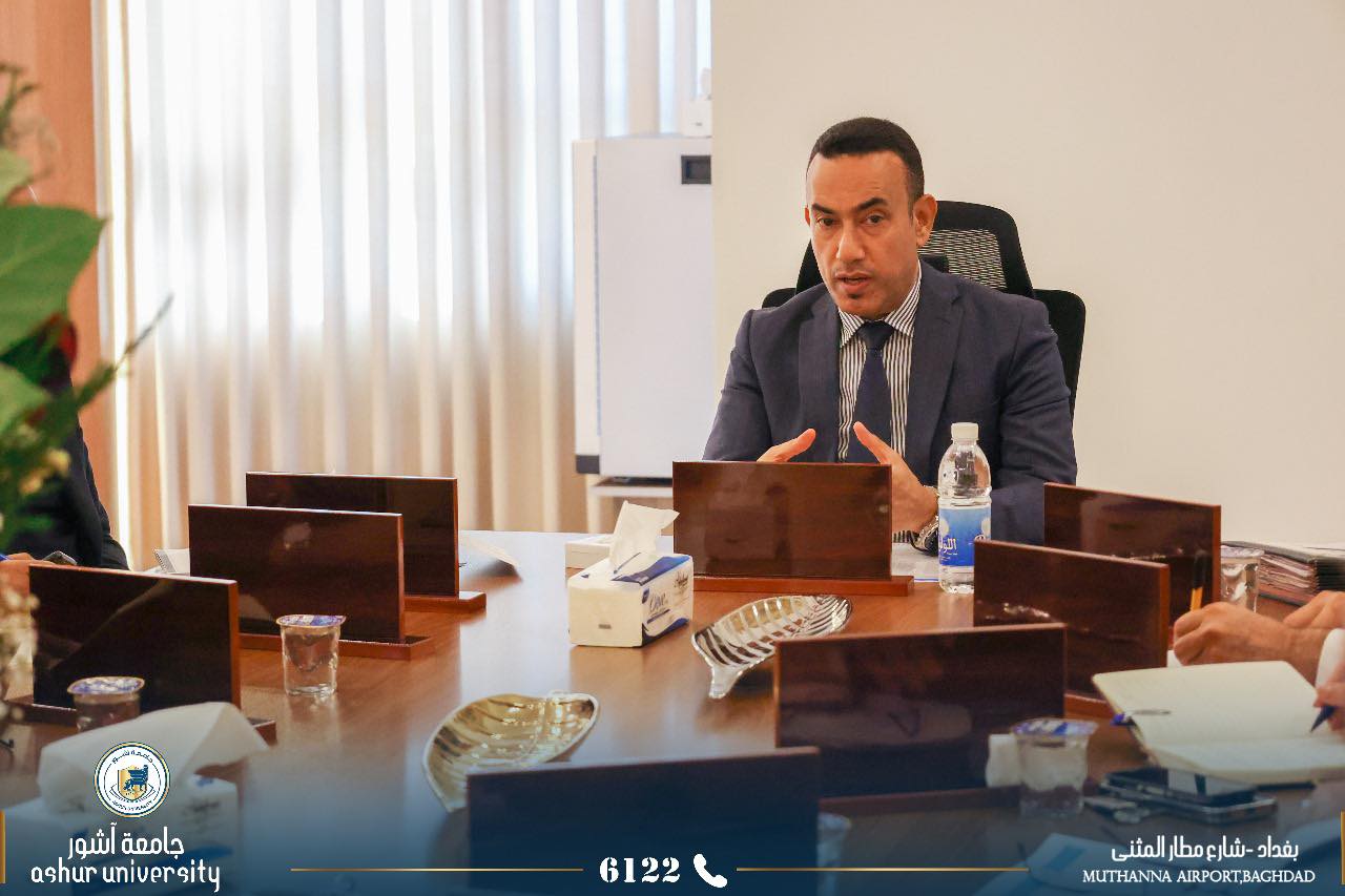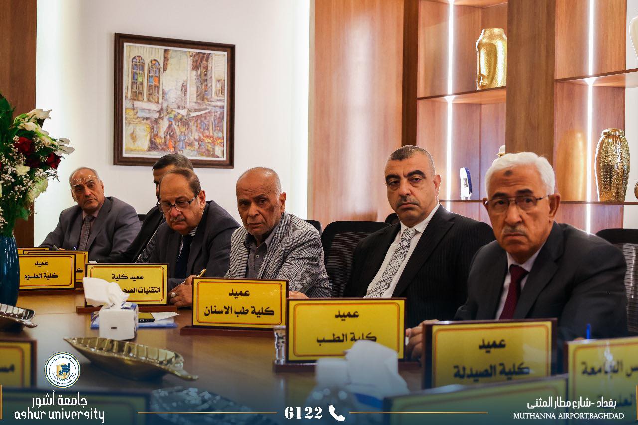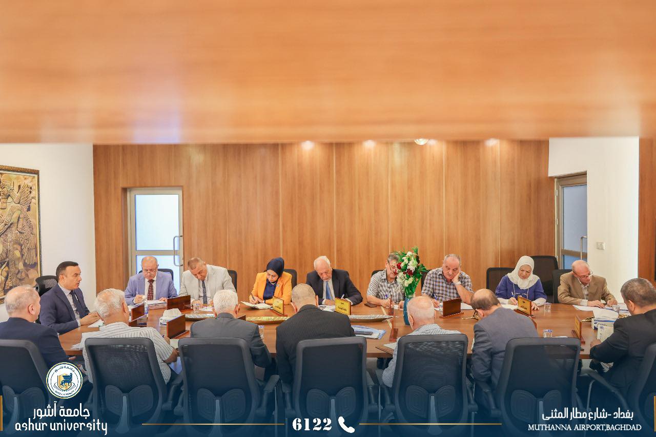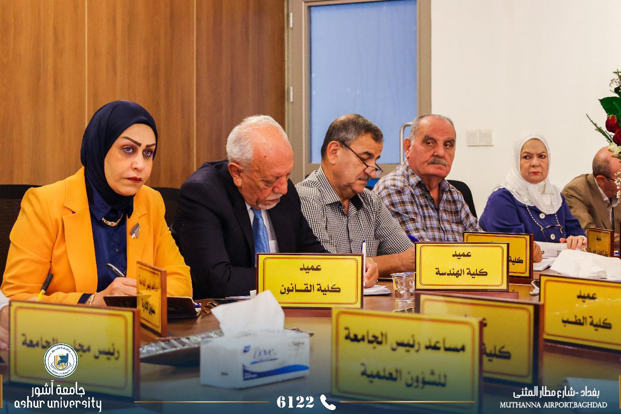عقد مجلس جامعة اشور اجتماعه الدوري الاول للعام الدراسي ٢٠٢٤-٢٠٢٥ برئاسة السيد رئيس الجامعة الأستاذ الدكتور كاظم عبود الماجدي بحضور السادة أعضاء المجلس يوم الاحد الموافق ٢٠٢٤/١٠/٦،