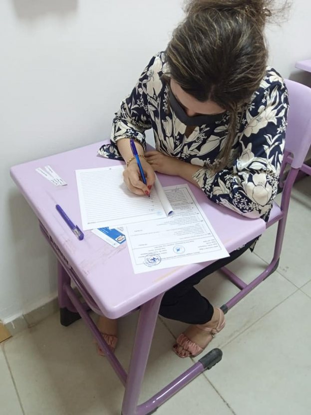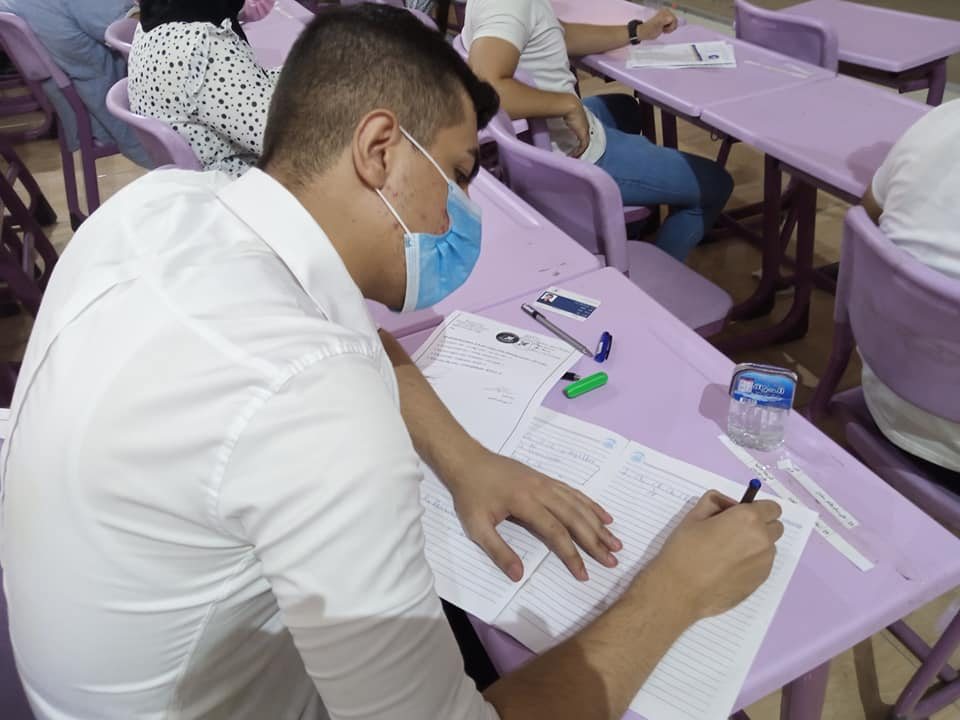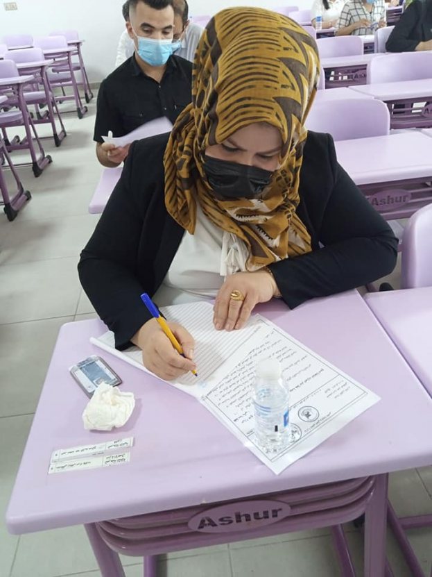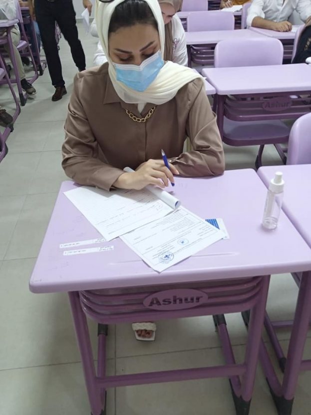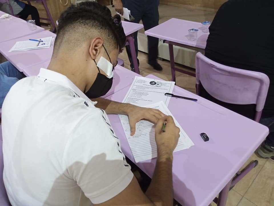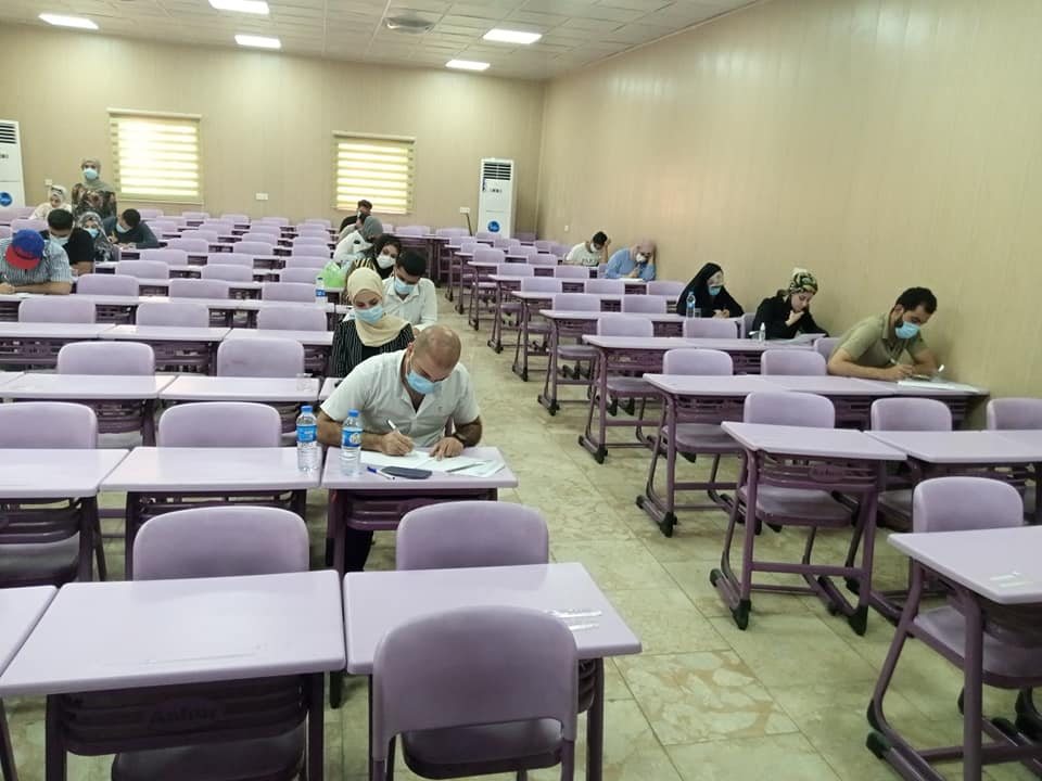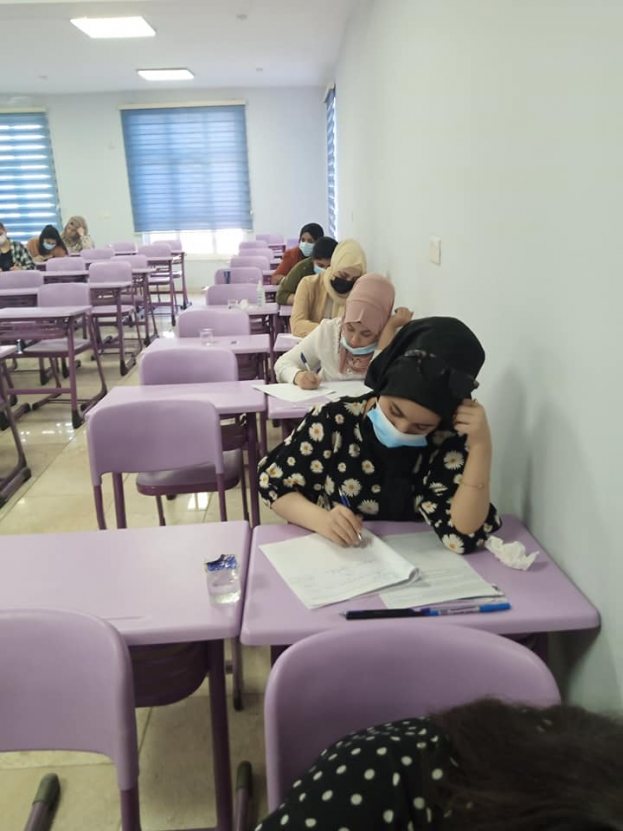 طلبتنا يقهرون الحر والجائحة من خلال تواجدهم في قاعات الامتحان وهم يلتزمون بتعليمات اللجنة العليا للسلامة الوطنية وتأكيدات عمادة الكلية من أجل سلامتهم وتحقيق طموحاتهم في مستقبل واعد. فالعقل السليم في الجسم السليم .