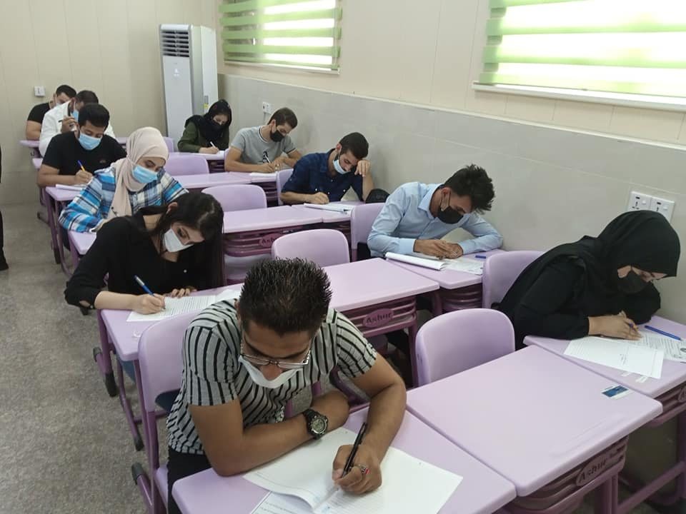 يواصل طلبة كلية آشور الجامعة أداء الامتحانات الحضورية حسب توجيهات وزارة التعليم العالي والبحث العلمي بالعمل وفق نظام التعليم المدمج حيث جرت اليوم الاثنين الموافق 2021/8/2 امتحانات جميع الاقسام وحسب الجداول التي وضعتها اقسام الكلية لطلبتنا وبأشراف مباشر من قبل السيد عميد الكلية الاستاذ المساعد الدكتور كاظم عبود الماجدي المحترم والسادة أعضاء لجنة متابعة الامتحانات التي شكلتها عمادة الكلية .وخلال جولته اليوميةاطلع السيد العميد على القاعات الامتحانية مستفسرا من الطلبة عن طبيعة الأسئلة واحتياجاتهم .كما أكد السيد العميد على تواجد السادة المراقبين في القاعات الامتحانية قبل وقت مناسب من من بدء الامتحان والالتزام بتعليمات وزارة الصحة بخصوص ارتداء الكمامات والتباعد الاجتماعي للحفاظ على صحة طلبتنا الاعزاء .
