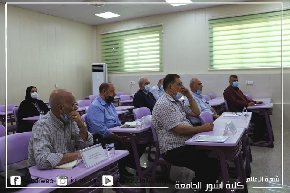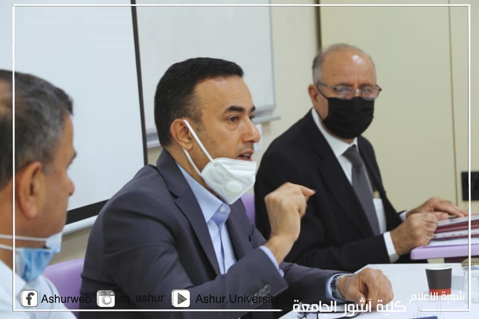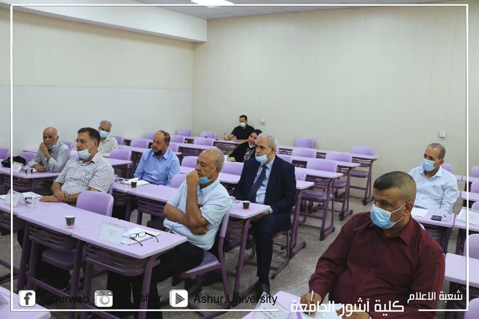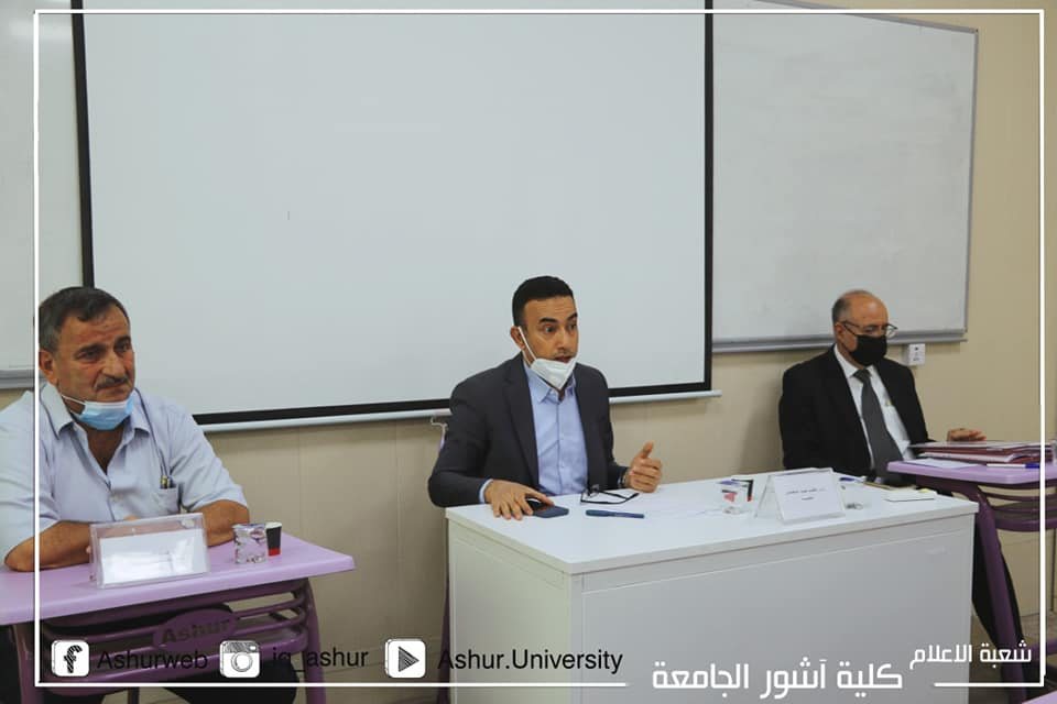 عقد مجلس كلية آشور الجامعة اجتماعه الدوري التاسع للعام الدراسي ٢٠٢١ - ٢٠٢٢ يوم الأحد الموافق ٢٠٢١/١٢/٩ برئاسة السيد عميد الكلية الاستاذ المساعد الدكتور كاظم عبود عيسى الماجدي المحترم بحضور السادة أعضاء المجلس .وفي بداية الاجتماع هنئ السيد العميد السادة أعضاء المجلس ومن خلالهم الكادر التدريسي والطلبة بمناسبة بدء العام الدراسي الجديد ٢٠٢٢-٢٠٢٣ متمنيا للجميع الصحة والسلامة .كما تطرق السيد العميد المحترم إلى كتاب الشكر والتقدير الصادر من معالي وزير التعليم العالي والبحث العلمي الى عمادة الكلية وكوادرها التدريسية والإدارية والفنية لما بذلته الكلية لإنجاح العام الدراسي وطالب السيد العميد الاستمرار على هذا النهج المتميز .كما شكر السيد العميد السيد المعاون العلمي والكادر التدريسي على الجهود المبذولة لتحقيق نسب نجاح متميزة هذا العام .بعدها ناقش المجلس المواضيع المدرجة على جدول الأعمال ومنها :