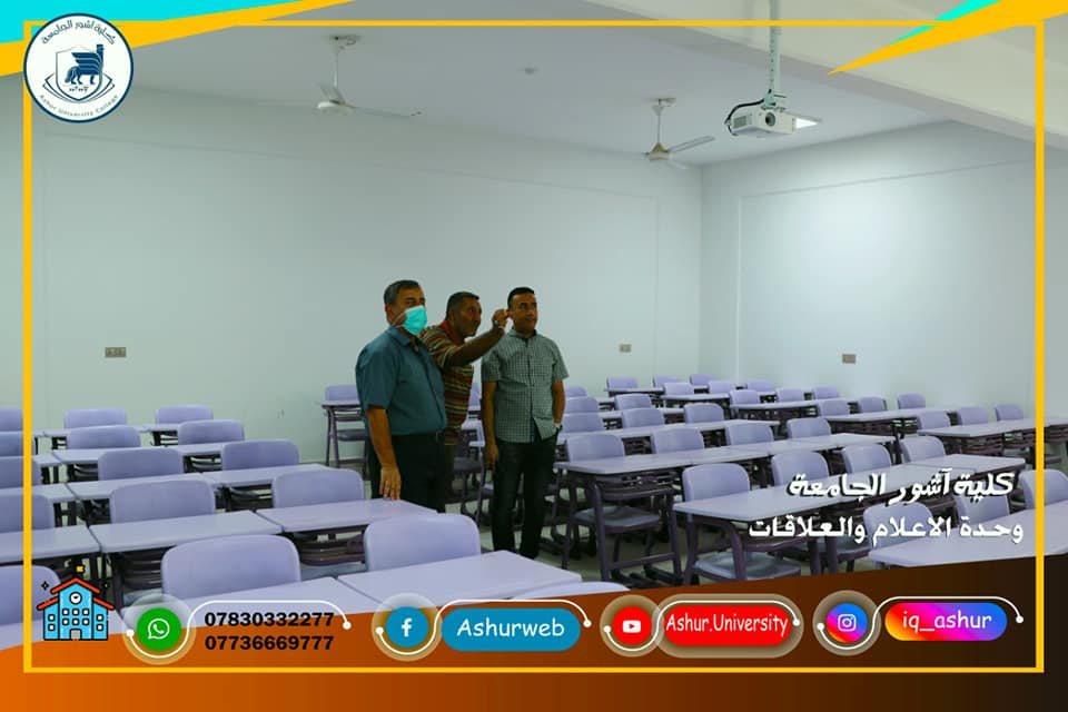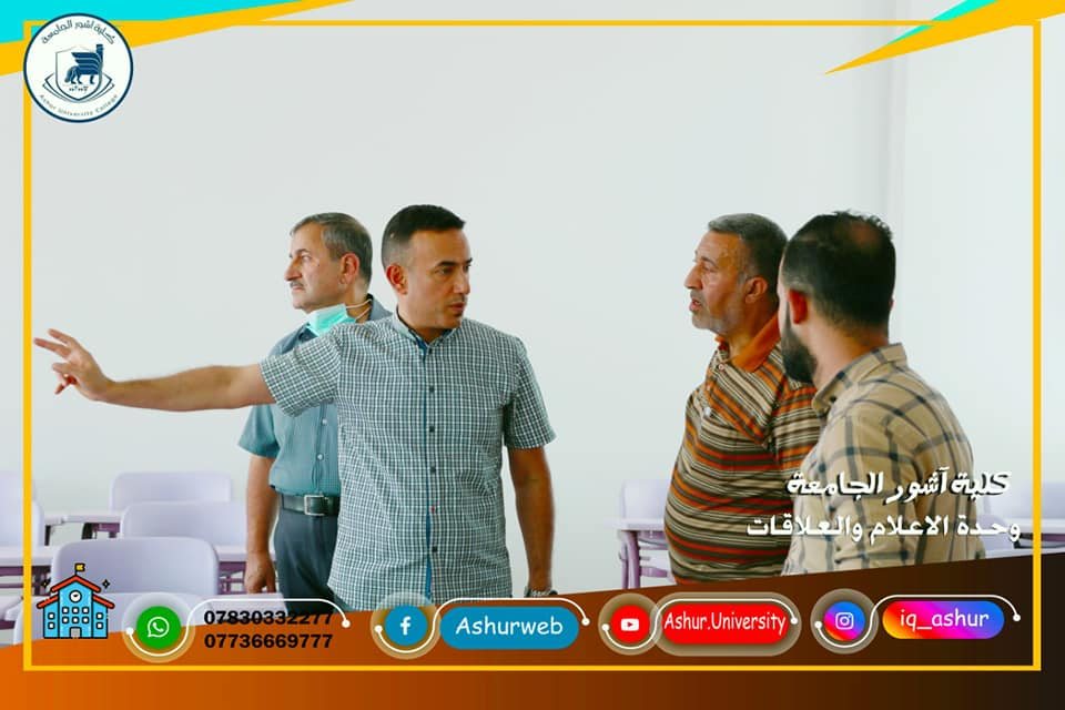 جهود استثنائية تبذلها عمادة كلية آشور الجامعة لاستقبال العام الدراسي الجديد 2021-2022 لتكون الكلية بابهى صورة ومن أجل تحقيق ذلك فقد تفقد السيد عميد الكلية الاستاذ المساعد الدكتور كاظم عبود عيسى الماجدي المحترم بنايات الكلية ومختبراتها العلمية المتطورة يرافقه السيد معاون العميد للشؤون العلمية الاستاذ الدكتور غسان قاسم واستمع خلال جولته إلى شرح مفصل من السادة الفنيين واوعز بأن تكون الكلية هذا العام قبلة لطلبتنا الاعزاء كما في الأعوام السابقة .وفي نهاية الجولة شكر السيد العميد العاملين على جهودهم الكبير في إنجاز الاعمال الموكلة إليهم لخدمة الطلبة .