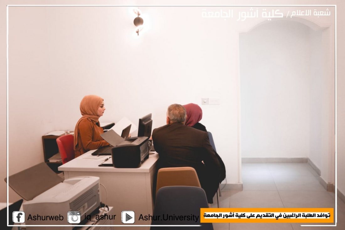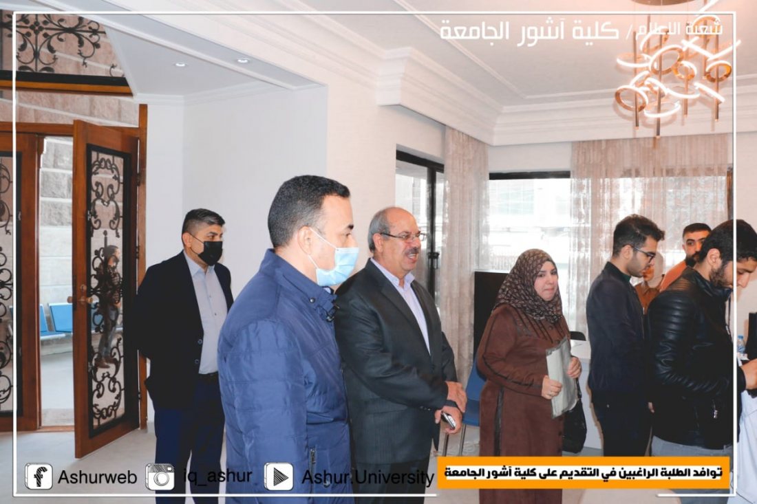 تفقد السيد عميد كلية آشور الجامعة الأستاذ المساعد الدكتور كاظم عبود عيسى الماجدي المحترم شعبة شؤون الطلبة والتسجيل في الكلية واطلع على عمل الشعبة والخدمات التي تقدمها للطلبة خريجي الدراسة الاعدادية أثناء التقديم إلى أقسام الكلية .وأبدى توجيهاته لمساعدة الطلبة أثناء التقديم والإجابة على جميع أسئلتهم التي تخص التقديم . علما أن شعبة شؤون الطلبة تعمل طيلة أيام الأسبوع وبضمنها يوم الجمعة .