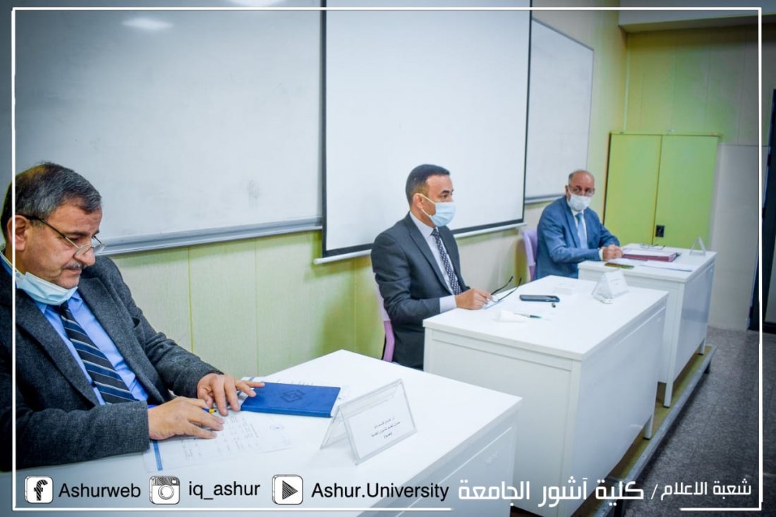 عقد مجلس كلية آشور الجامعة الجامعه اجتماعه الدوري الثالث للعام الدراسي ٢٠٢٢/٢٠٢١ برئاسة السيد عميد الكلية الاستاذ المساعد الدكتور كاظم عبود عيسى الماجدي المحترم وحضور السادة أعضاء المجلس ،وفي بداية الاجتماع طرح السيد العميد عدد من الملاحظات التي تخص المسيرة التعليميه في الكلية وكانت كما يلي .