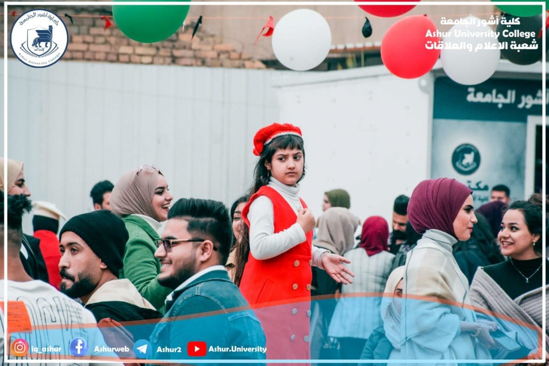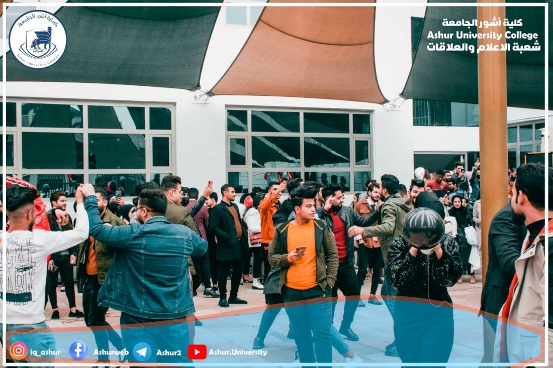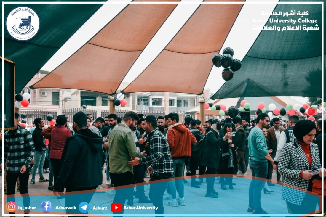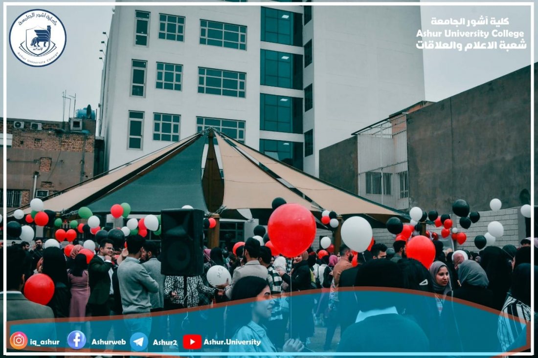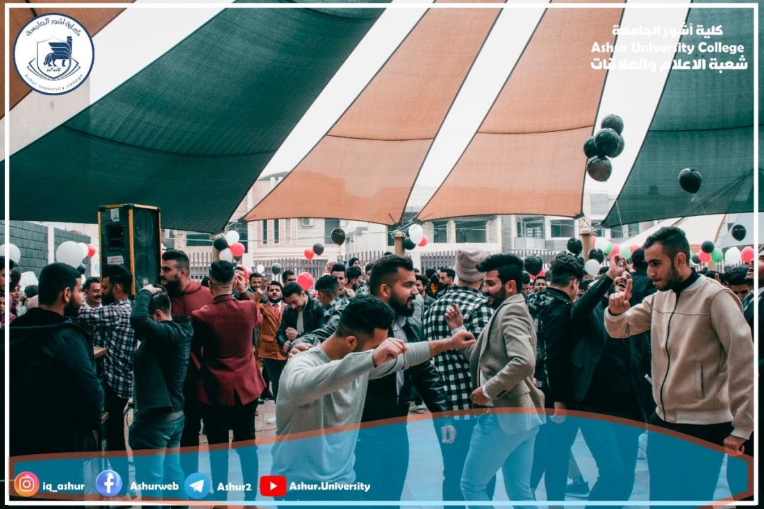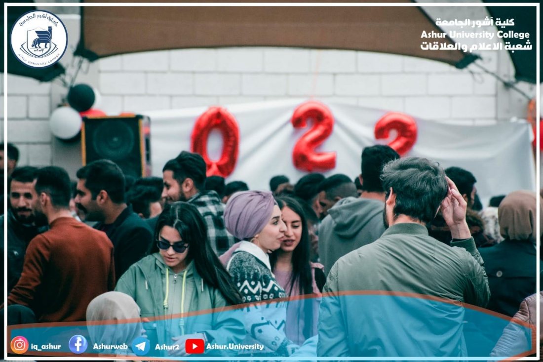 ابتهاجا ببدء العام الدراسي الجديد ٢٠٢١-٢٠٢٢ وحلول العام الميلادي ٢٠٢٢ نظم طلبة كلية آشور الجامعة احتفالا كبيرا على حدائق الكلية تضمن عملا مسرحيا واطلاق بالونات ملونه وقصائد شعرية إضافة إلى بعض الفعاليات الفنية .لقد كان الاحتفال معبرا عن حب أبناءنا الطلبة للحياة وبناء الوطن من خلال تفوقهم العلمي في مختلف المراحل الدراسية والأقسام العلمية والإنسانية ،من جانبها وفرت عمادة الكلية كل مستلزمات نجاح الاحتفال وقد أشاد الطلبة بالدعم الكبير الذي قدمته العمادة وهذا إن دل على شيء فأنه يدل على التشجيع الكبير لكل الفعاليات التي يقوم بها الطلبة