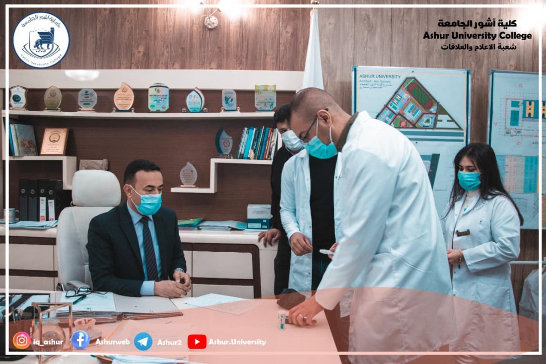 برعاية السيد عميد كلية آشور الجامعة الأستاذ المساعد الدكتور كاظم عبود الماجدي المحترم ،أقام قسم الصيدلة في الكلية حملة تطوعية للتوعية بمخاطر مرض السكري وقياس مستوى السكر في الدم لكادر الكلية المتقدم والأساتذة والإداريين والطلبة وتمت الحملة بإشراف السيد رئيس قسم الصيدلة الاستاذ الدكتور محمد كاظم الاعرجي والسادة التدريسيين م.د رشاد مصطفى محمد وم.د زيد أسامة إبراهيم بالتعاون مع طلبة المرحلة الأولى .