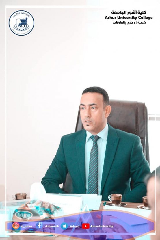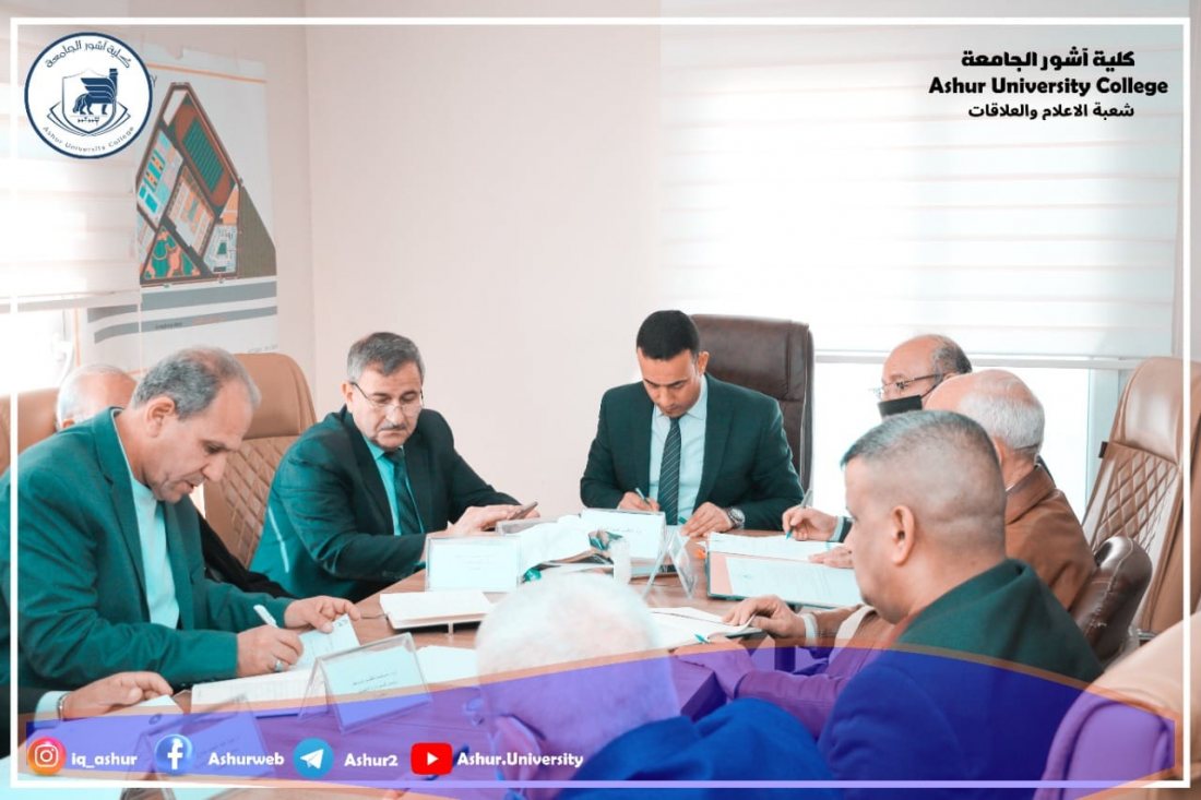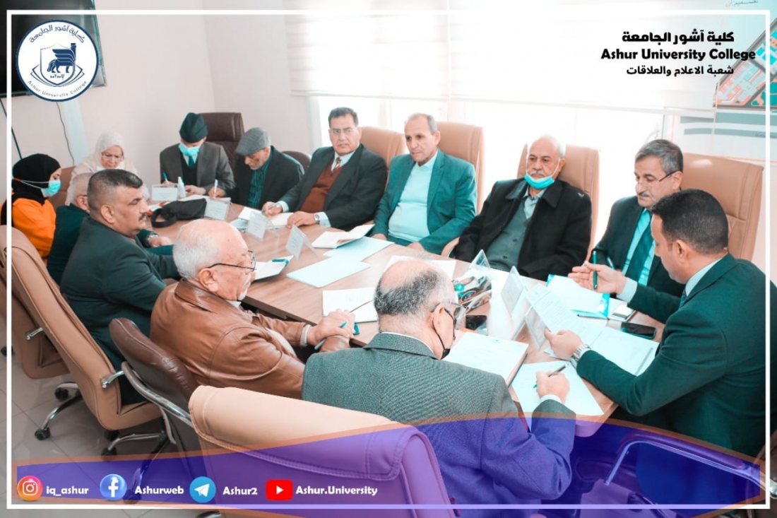 عقد مجلس كلية آشور الجامعة اجتماعه الدوري الرابع للسنة الدراسية ٢٠٢١-٢٠٢٢ برئاسة السيد عميد الكلية الاستاذ المساعد الدكتور كاظم عبود الماجدي المحترم في أول اجتماع للمجلس في بناية الكلية الجديد في مطار المثنى بحضور السادة أعضاء المجلس ،في بداية الاجتماع رحب السيد العميد بالسادة الحضور متمنيا لهم التوفيق والسلامة .بعدها أبدى السيد العميد عدد من التوجيهات بخصوص العمل وكما يلي: