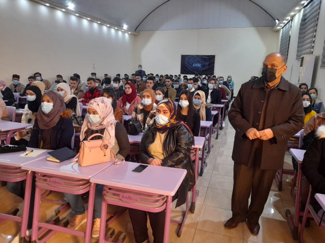 In a fatherly and educational atmosphere, Prof. Dr. Mohamed Kazem Al-Araji, Head of the Department of Pharmacy at the Ashur College of the University met on Tuesday 12/1/2021 in the presence of Prof. Dr. Ghassan Qassem Al-Lami, Associate Dean of Science and a number of professors of the department and under the direction of the Dean of the College, Assistant Professor Dr. Kazem Abboud Issa Al-Majidi Respected, the necessity of meeting with new students by the heads of departments. At the beginning of the meeting, Dr. Muhammad welcomed the new students of the department, wishing them a life of study dominated by excellence and success. He stressed the need to adhere to attending the online lessons provided by professors to students, according to the directive of the Ministry of Higher Education, in addition to his emphasis on attending theoretical lessons in the college's laboratories. He added that the directives of the respected Dean emphasized that all the difficulties that students may face in their academic life should be overcome. He also confirmed that the department had provided all the study materials and lesson schedules and divided students into groups. At the end of his speech, he wished them an academic life dominated by excellence and success. Then he answered. For all student inquiries.