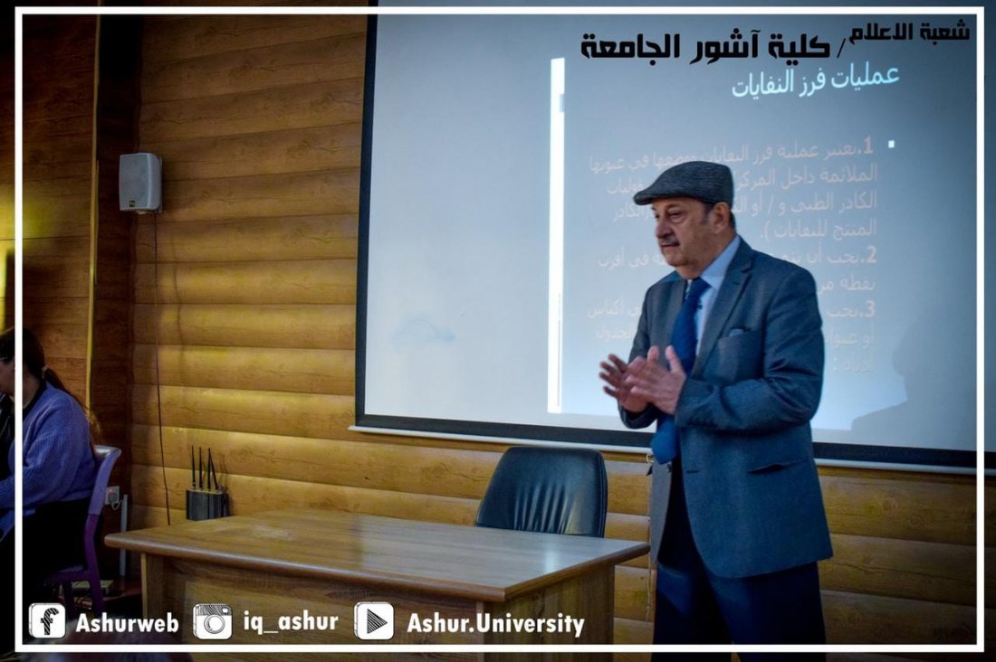 بحضور السيد عميد كلية آشور الجامعة الأستاذ المساعد الدكتور كاظم عبود الماجدي المحترم قدم الأستاذ الدكتور ( مؤيد العباجي) التدريسي في قسم تقنيات المختبرات الطبية في كلية آشور محاضرة علمية تحت عنوان ( إدارة مخلفات المستشفيات ) وذلك يوم الاربعاء الموافق ٢٠٢٢/٣/٢٣ وحضرها السيد معاون العميد العلمي الاستاذ الدكتور غسان قاسم وعدد من السادة رؤوساء الأقسام والتدريسيين والطلبة .وتحدث السيد المحاضر عن طبيعة وانواع مخلفات المستشفيات وطرق معالجتها كونها ذات تأثير كبير على البيئة والصحة العامه ، وتطرق إلى أهم هذه الطرق المستخدمة حاليا وهي حرق هذه المخلفات وفي نهاية المحاضرة التي اتسمت بالكثير من المناقشات والأسئلة لأهميتها .كما شارك في النقاش السيد العميد المحترم وأشاد بالجهود المبذولة من قبل رئاسة القسم والسيد المحاضر .