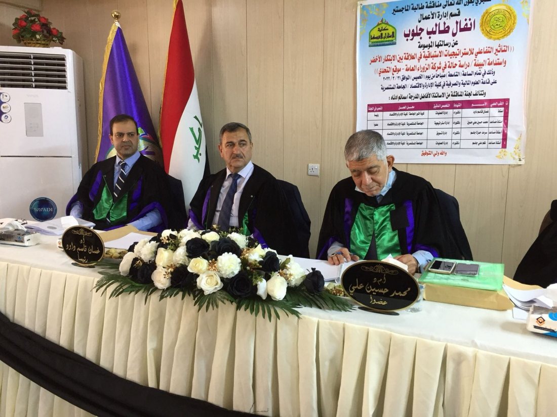 بدعوة من عمادة كلية الادارة والاقتصاد - الجامعة المستنصرية ترأس الاستاذ الدكتور غسان قاسم اللامي معاون عميد كلية آشور الجامعة يوم الخميس الموافق 2022/3/31 لجنة مناقشة رسالة الماجستير في إدارة الأعمال للطالبة (انفال طالب جلوب ) .وفي ختام المناقشة قدم السيد عميد كلية الادارة والاقتصاد الشكر للاستاذ الدكتور قاسم لجهوده في إنجاح المناقشة متمنيا له التوفيق .