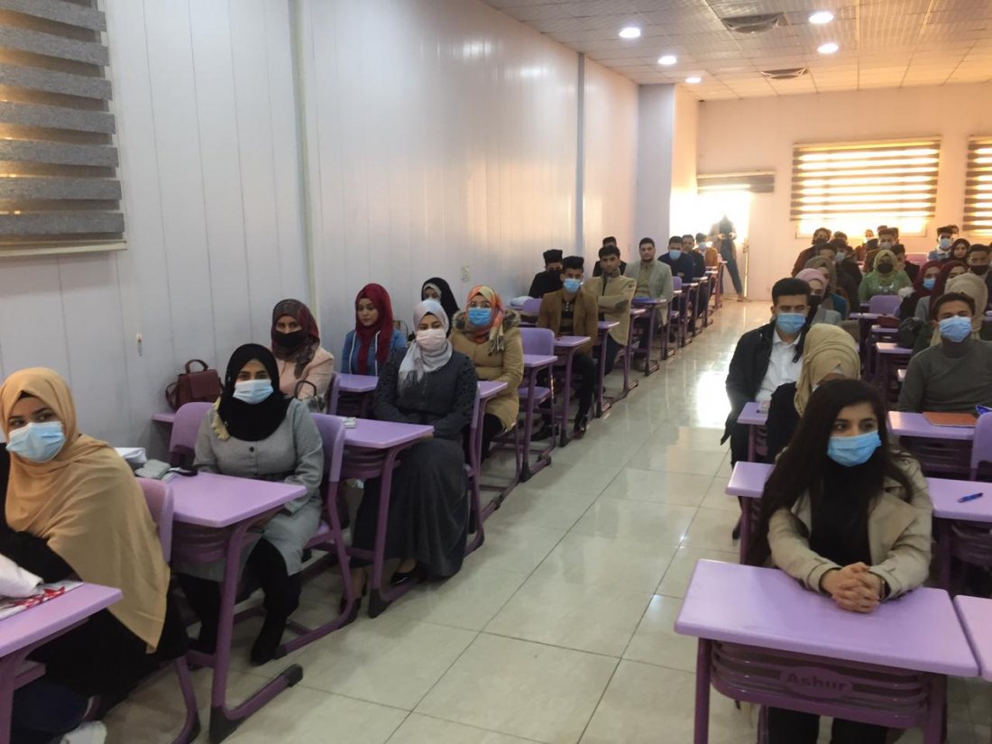 An educational and scientific atmosphere experienced by the first stage dentistry students in the Ashur University College on Saturday, 01/16/2021, during their meeting with the head of the department, Assistant Professor Dr. Ghaleb Al-Hamidi, in the presence of the Scientific Dean, Prof. Dr. Ghassan Qassem. At the beginning of the meeting, the head of the department welcomed the new students and stressed the need to adhere to time and attend theoretical and practical lessons in the laboratories. He said that success and excellence will not be achieved unless the student finds and works hard and always attends the lectures. He added that the department has prepared everything that the student needs during his academic year. For his part, the Assistant Dean of Science, Prof. Dr. Ghassan Al-Lami, conveyed the greetings of the respected Dean, Assistant Professor Dr. Kazem Abboud Issa Al-Majidi to his students, wishing them a successful academic year. He called his students to attendance at all times. At the end of the meeting, the head of the department and the assistant listened to inquiries about the requests and they were answered.
