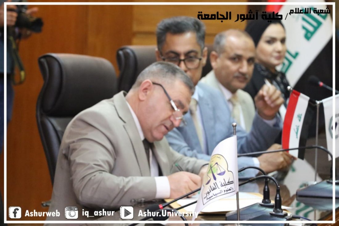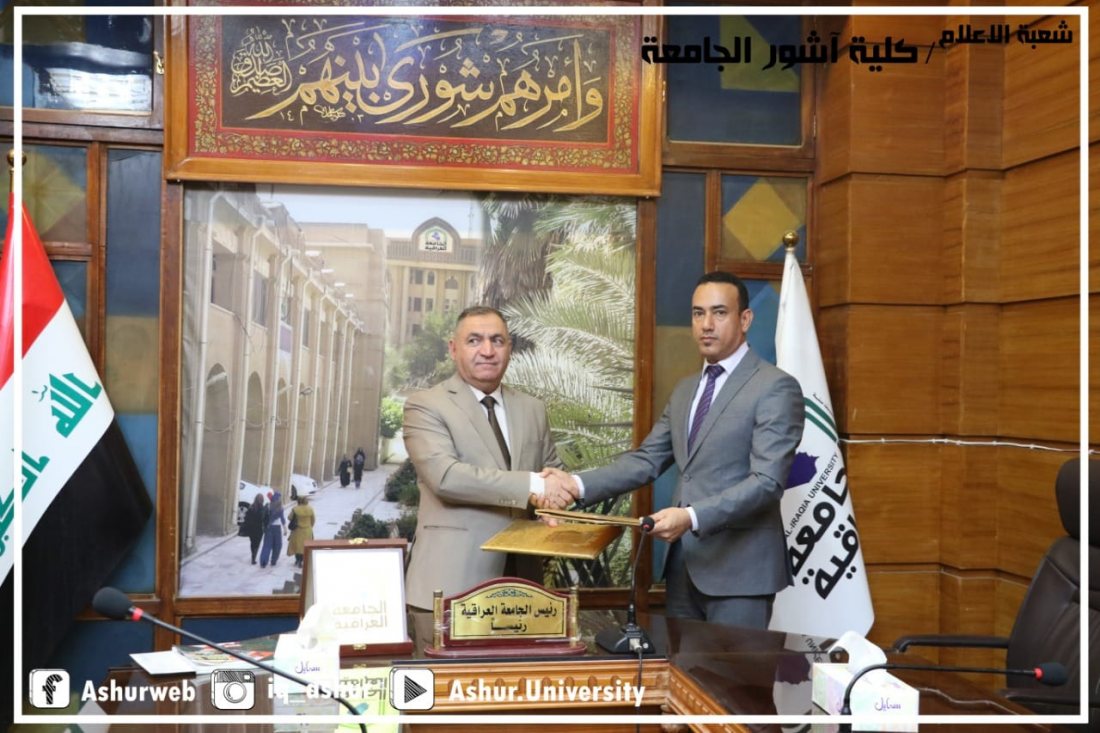 من اجل الارتقاء بالمستوى العلمي والبحثي لكلية آشور الجامعة وجعلها في مستوى الكليات العريقة وفتح آفاق جديدة لزيادة أواصر التعاون في المجالات الأكاديمية تم يوم الثلاثاء الموافق ٢٠٢٢/٤/١٢ التوقيع على اتفاقية التوأمة والتعاون المشترك بين كلية آشور الجامعة ممثلة بعميدها الاستاذ المساعد الدكتور كاظم عبود الماجدي المحترم وبين كلية العلوم الإسلامية في الجامعة العراقية ممثلة بالسيد رئيس الجامعة الأستاذ الدكتور ( علي صالح الجبوري ) .