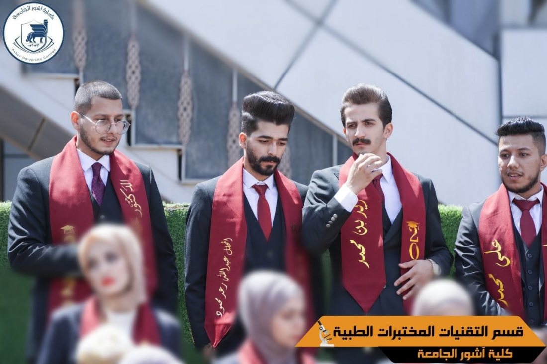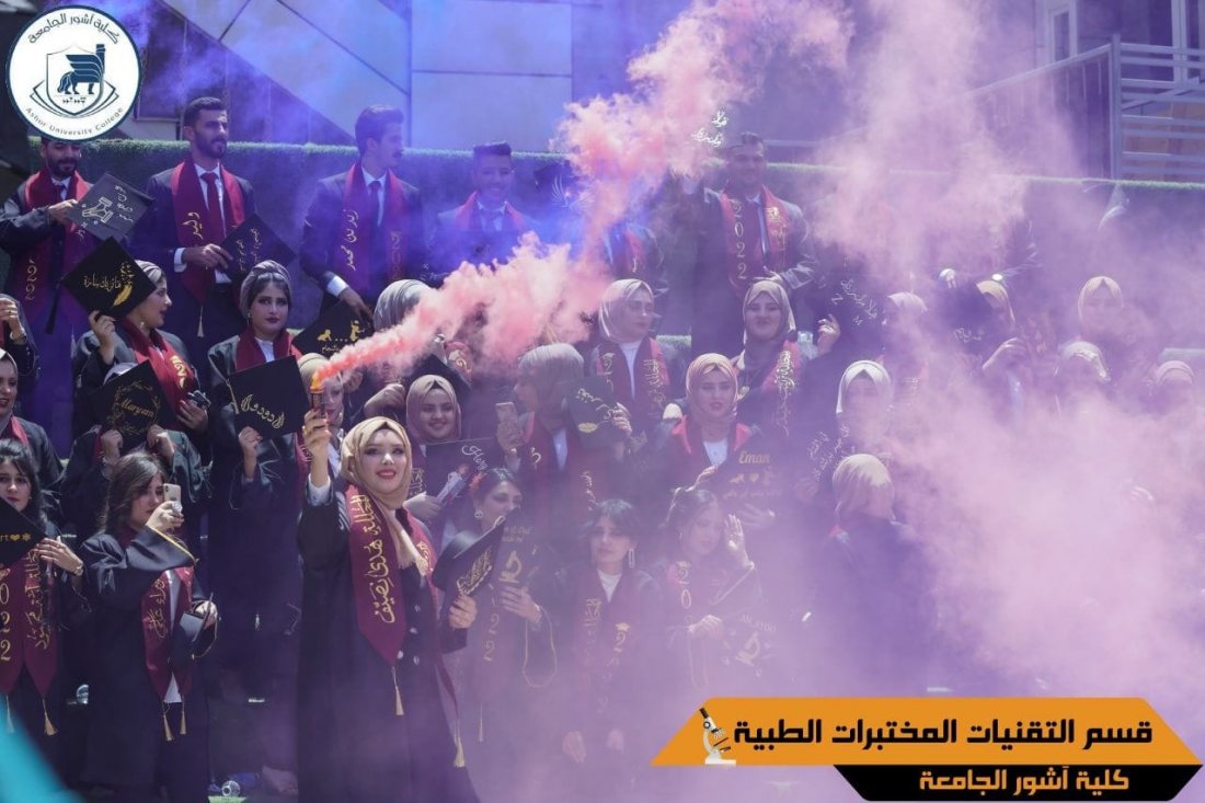 في أجواء كرنفالية جميلة وسعيدة شاركهم فيها السيد عميد كلية آشور الجامعة الأستاذ المساعد الدكتور كاظم عبود الماجدي المحترم والسيد معاون العميد للشؤون العلمية الاستاذ الدكتور غسان قاسم اللامي ورئيس وأساتذة قسم تقنيات المختبرات الطبية جرت يوم السبت الموافق ٢٠٢٢/٥/١٤ مراسيم التقاط صور التخرج لطلبة المرحلة الرابعة من قسم تقنيات المختبرات الطبية والتي ارتسمت من خلالها الفرحة الغامرة على وجوه الطلبة وعوائلهم الذين شاركوا ابنائهم هذا اليوم التاريخي في حياتهم الدراسية والتي ستنقلهم من أجواء الدراسة إلى أجواء العمل بعد جهود اربعة سنوات بذلها الأساتذة والطلبة للوصول إلى طموحهم في نيل مبتغاهم الا وهو الشهادة الجامعية .وفق الله طلبتنا وسدد خطاهم في خدمة بلدنا العزيز .