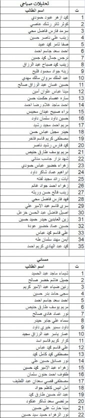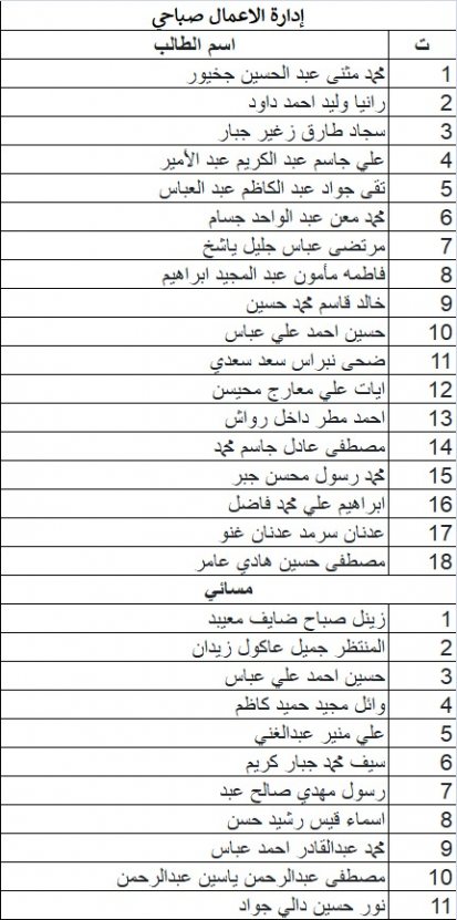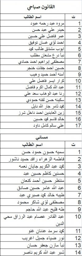 تدعوا عمادة كلية اشور الجامعة الطلبة المدرجة أسمائهم في القوائم المرفقة الحضور إلى الكلية يومي السبت والاحلاكمال اجرءات التسجيل ودون تأخير .