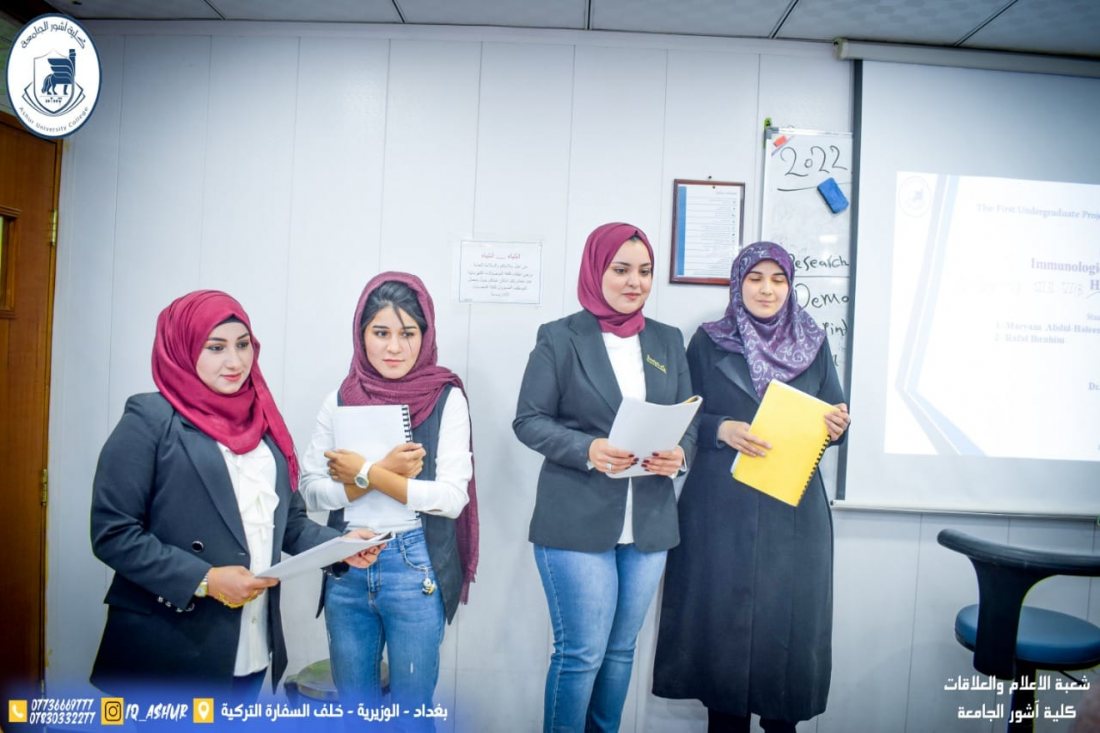 أجرى قسم تقنيات المختبرات الطبية في كلية آشور الجامعة يوم الاثنين الموافق ٢٠٢٢/٥/١٦ مناقشة بحوث تخرج عدد من طلبة المرحلة الرابعة بحضور السيد رىئيس قسم تقنيات المختبرات الطبية الاستاذ الدكتور فالح حسن الموسوي وعدد من أساتذة القسم ،والبحوث هي جزء من متطلبات التخرج.