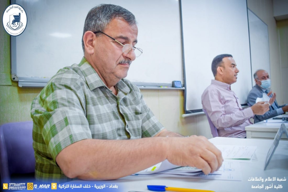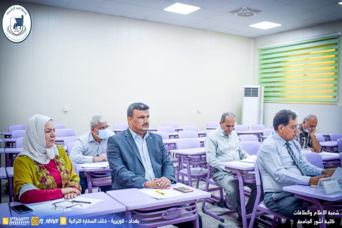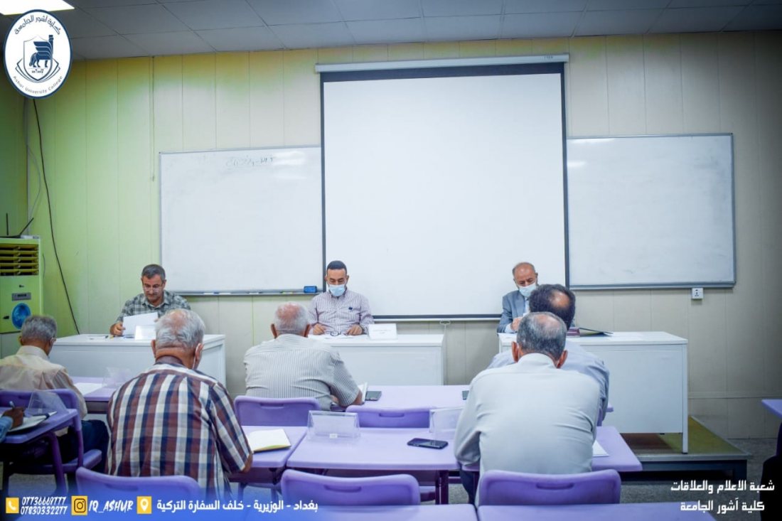 عقد مجلس كلية آشور الجامعة اجتماعه الدوري الثامن للعام الدراسي ٢٠٢١-٢٠٢٢ برئاسة السيد عميد كلية آشور الجامعة الأستاذ المساعد الدكتور كاظم عبود الماجدي المحترم يوم الاثنين الموافق ٢٠٢٢/٥/١٦ بحضور جميع السادة أعضاء المجلس .