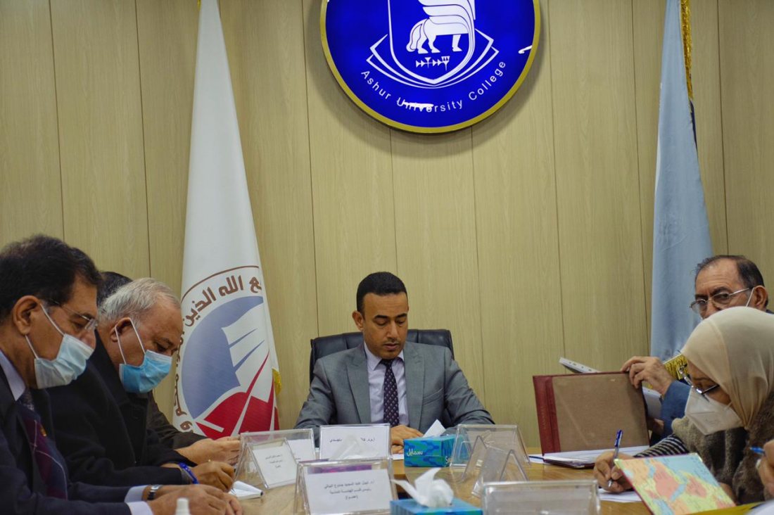 عقد مجلس كلية اشور الجامعة اجتماعه الدوري الذي يعقد شهريا يوم الثلاثاء الموافق ٢٠٢١/٢/٩ على قاعة الاجتماعات في الكلية برئاسة السيد عميد الكلية الأستاذ المساعد الدكتور كاظم عبود عيسى الماجدي المحترم وحضور السادة أعضاء المجلس .وتم خلال الاجتماع مناقشة الفقرات المدرجة على جدول الأعمال والتي كان أبرزها.