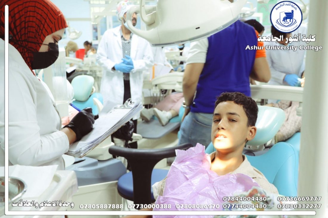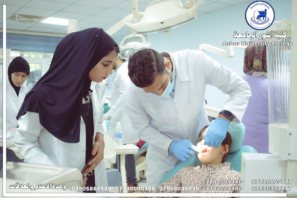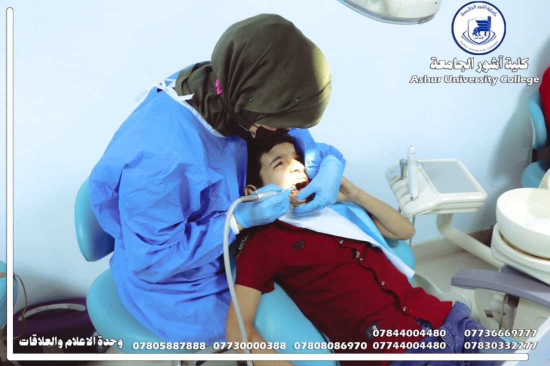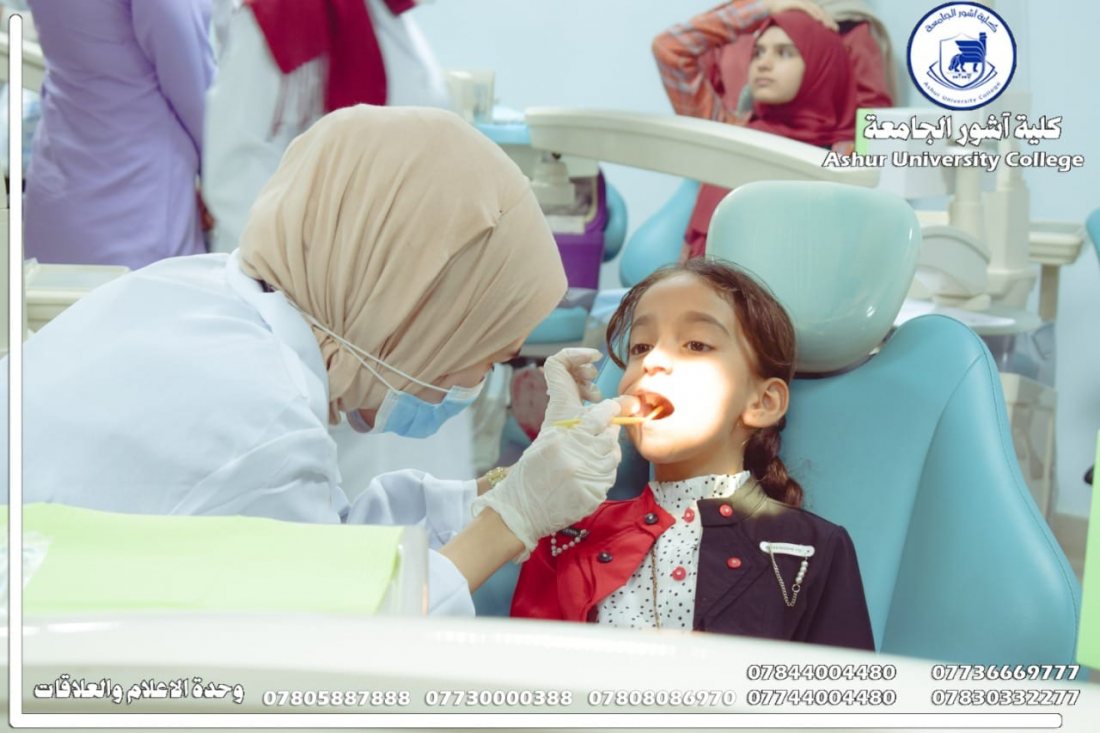 استقبلت عيادات طب الاسنان في كلية آشور الجامعة عددا من الأطفال الأيتام وأبناء العوائل المتعففة لغرض إجراء الفحص ومعالجة أسنانهم وتأتي هذه المبادرة بدعم من السيد عميد الكلية الاستاذ المساعد الدكتور كاظم عبود الماجدي المحترم والذي يؤكد دوما على تقديم الخدمات المجانية من فحص ومعالجة للايتام والعوائل المتعففة وهذا النهج الإنساني قد دأبت عليه كلية آشور الجامعة وفي كافة المجالات وإشرف على الفحص والمعالجه الدكتورة هاجر ابراهيم رئيسة القسم وكادر قسم طب الاسنان .