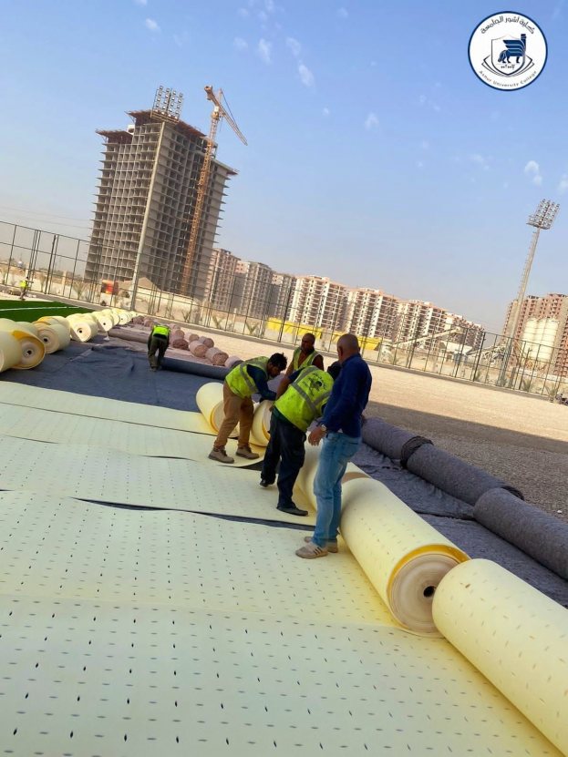 تسارع الجهود في كلية أشور الجامعة من أجل اكمال جميع بناها التحتية في موقعها بالقرب من مطار المثنى حيث وصل العمل الى مراحل متقدمة من الانجاز مع بدء مرحلة إكساء الملاعب الخارجية في المدينة الرياضية بافضل الارضيات المستوردة من أهم المناشئ العالمية وبما يتناسب مع طموحات طلبتنا الأعزاء .