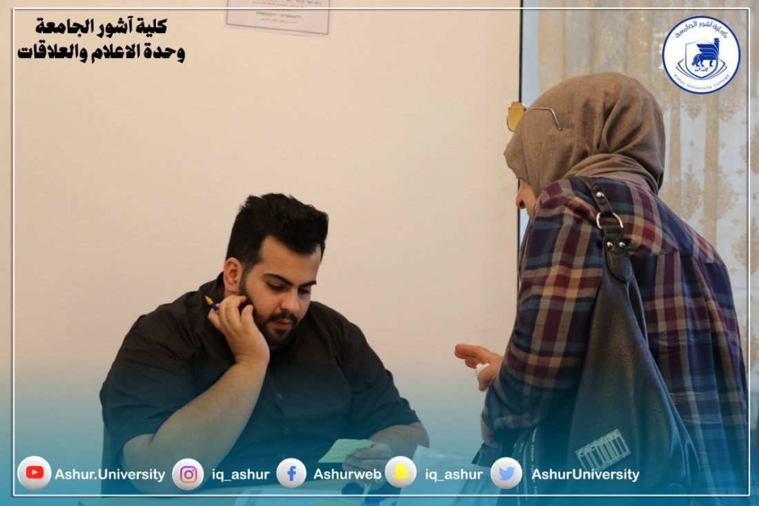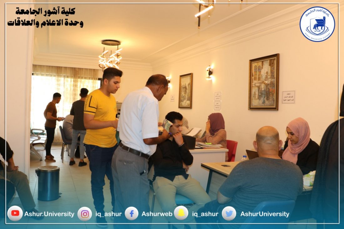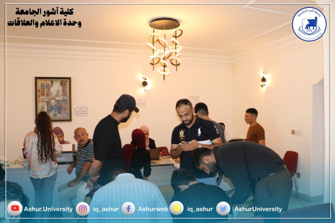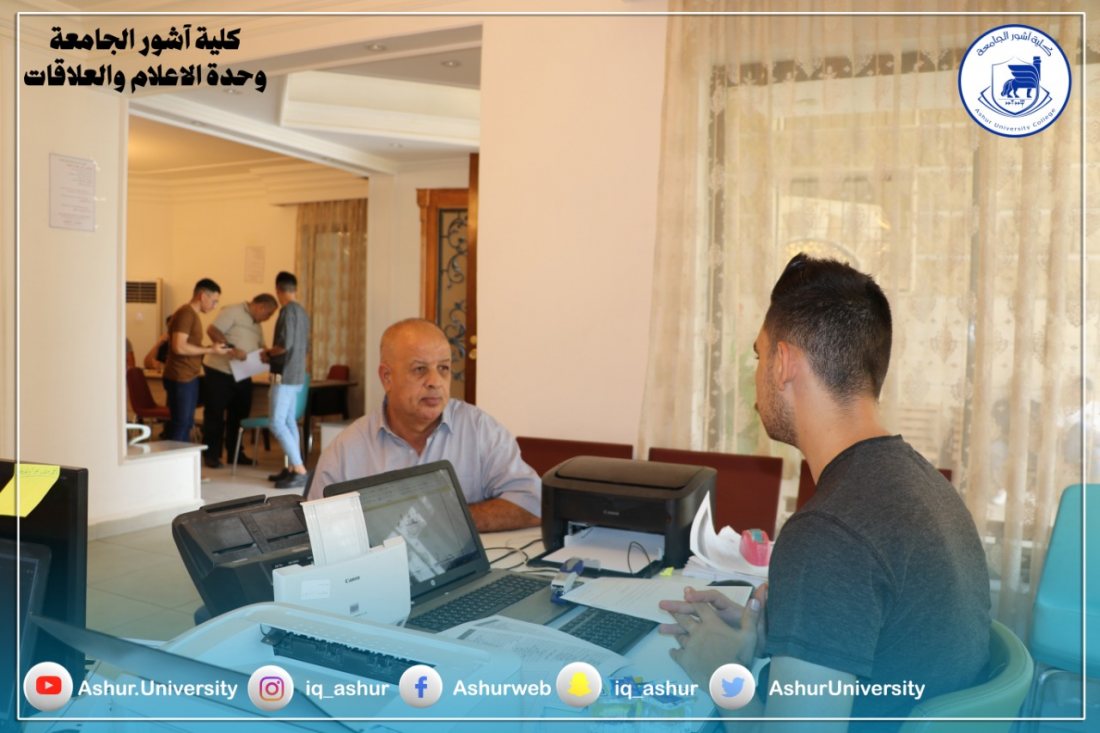 اهلاً وسهلاً بكم في كلية آشور الجامعة اعزائنا الطلبة زيارتكم مرحب بها ووجودكم معنا يسعدنا فأبواب قسم التسجيل مشرعة لاستقبالكم وإنجاز معاملات التقديم والتدقيق علماً أن هناك تخفيض كبير في الاجور الدراسية وعلى كافة الأقسام وان موظفي القسم متواجدين من الساعة ال8 صباحاً إلى الساعة 4 عصراً فأهلاً وسهلاً بكم .