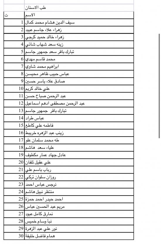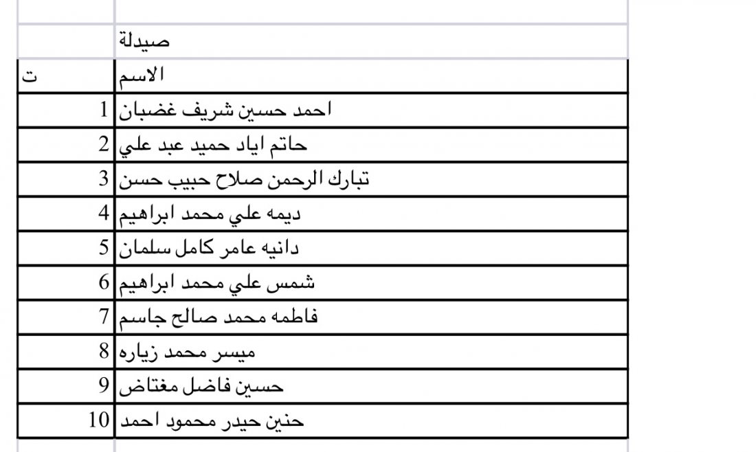 على الاسماء المدرجة ضمن القوائم مراجعه الكلية غدا الجمعة باسرع ما يمكن لغرض تفعيل الكودات الخاصه ب اسمائهم علما اني التسجيل متواجد طيلة اوقات الدوام من الساعة 7 صباحا الى 6 مساءا
