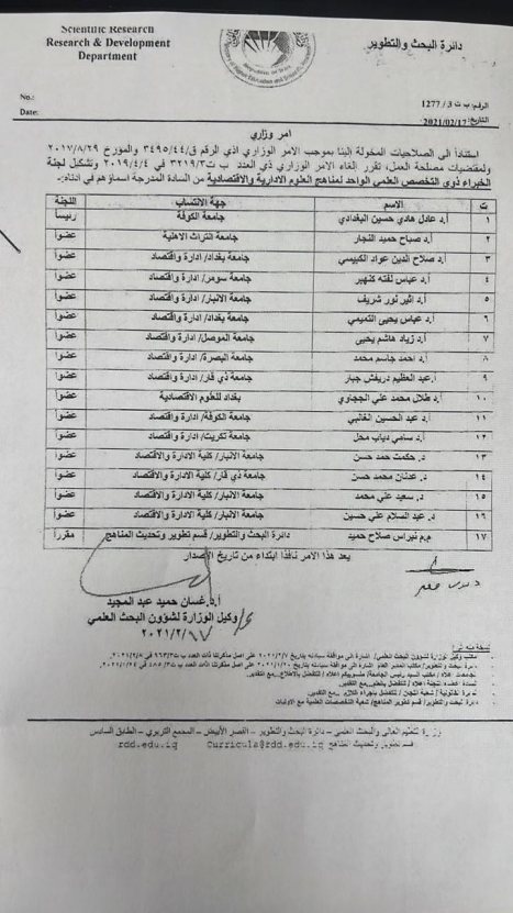 منحت وزارة التعليم العالي والبحث العلمي / دائرة البحث والتطوير الاستاذ الدكتور طلال محمد علي ججاوي رئيس قسم المحاسبة في كلية آشور الجامعة كتاب شكر وتقدير لجهوده المتميزة في متابعة وتقييم ( مناهج العلوم الإدارية والاقتصادية وابداء الرأي واقتراح التعديلات الضرورية عليها ) متمنين للاستاذ الدكتور طلال محمد علي التوفيق في خدمة المسيرة العلمية والتعليمية .