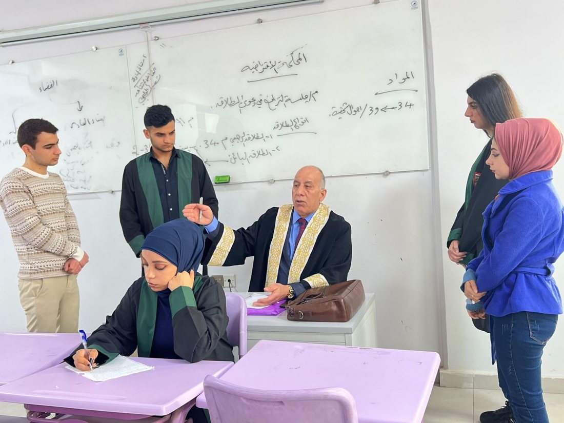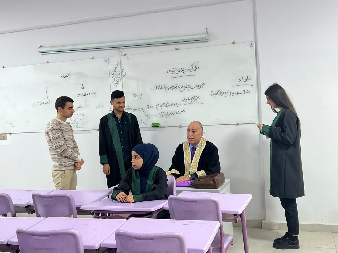ضمن المنهاج التدريسي والتدريبي لقسم القانون والذي يعتبر كدروس عملية عقدت المحكمة الافتراضة جلستها الأسبوعية يوم الاربعاء الموافق ٢٠٢٢/١١/٣٠ برئاسة القاضي نصيف عبدالله الدليمي وكان موضوعها (, الترافع في دعوى إيقاع الطلاق أمام المحكمة ) وقد أدى الطلبة دورهم كمحامين وأطراف الدعوى ،بعدها أصدرت المحكمه حكما بالموضوع وتم الطعن به تميزا وصدق القرار المميز .كما استمعت المحكمة إلى اسئلة الطلبة حول الموضوع وتمت الإجابة عليها .