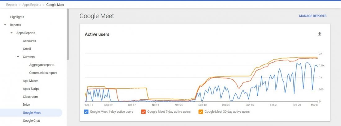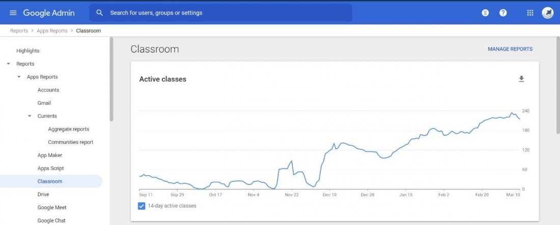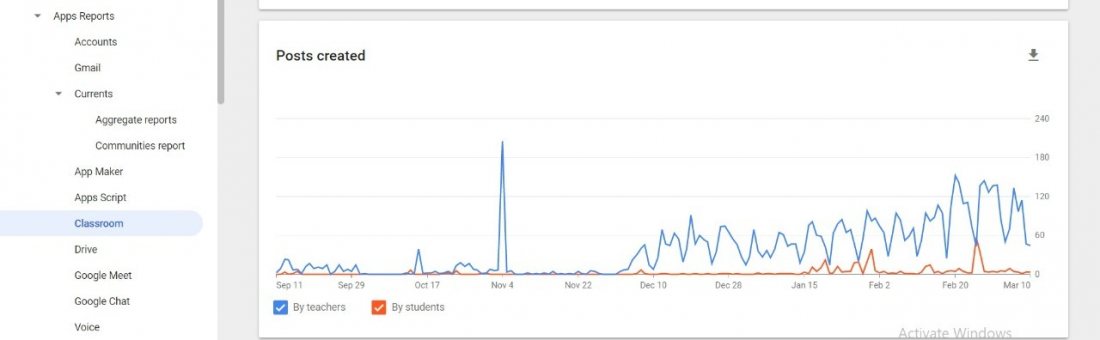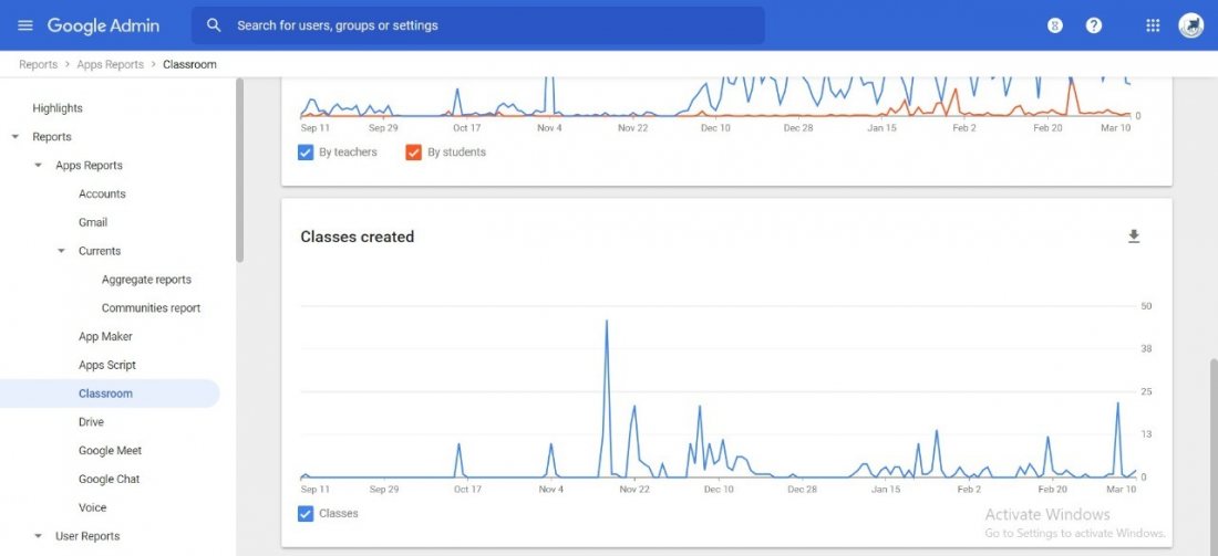 الرسوم البيانية لمدى استخدام تطبيق Google classroom