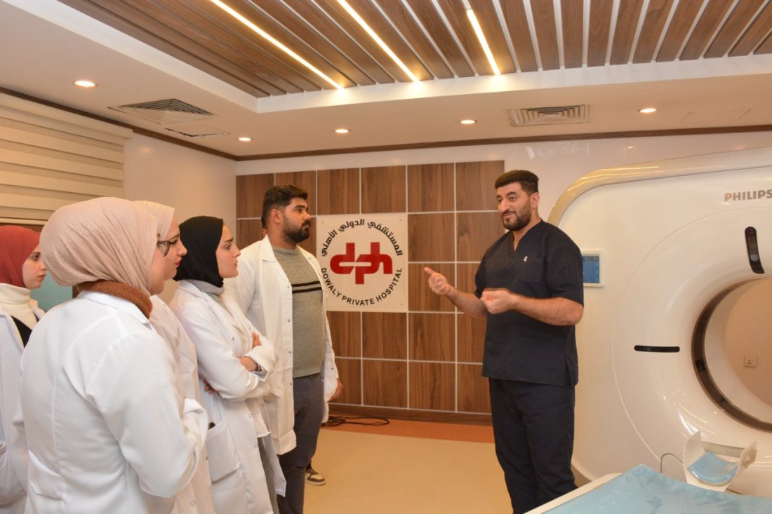 نظم قسم هندسة تقنيات الأجهزة الطبية في كلية آشور الجامعة زيارة علمية لطلبة القسم إلى المستشفى الدولي الاهلي يوم الاربعاء الموافق ٢٠٢٢/١٢/٢١ حيث تم استقبال الطلبة والمشرفين عليهم من قبل الكادر الإداري والطبي والتقني في المستشفى .شملت الزيارة الاطلاع على عمل العديد من اقسام المستشفى وهي قسم مصرف الدم والطوارئ والعمليات الصغرى والأشعة والسونار والرنين المغناطيسي و قسم المختبرات وغسيل الكلى وحاضنات الخدج واستمع الطلبة إلى شرح مفصل عن عمل هذه الأقسام من قبل الكادر المسؤول عن كل قسم .وفي نهاية الزيارة قدمت الدكتورة انتصار عبد المجيد المشرفة على الوفد الطلابي الشكر والتقدير إلى إدارة المستشفى وكادرها الطبي والتقني نيابة عن السيد عميد الكلية الاستاذ المساعد الدكتور كاظم عبود الماجدي المحترم لحسن الاستقبال والتعاون . ورافق الوفد الطلابي خلال الزيارة كل من م.م نور الهدى ضياء وم.م امنية ابراهيم و م.م رونق عدنان التدريسيات في قسم هندسة تقنيات الأجهزة الطبية .