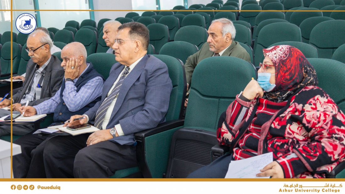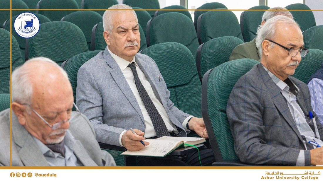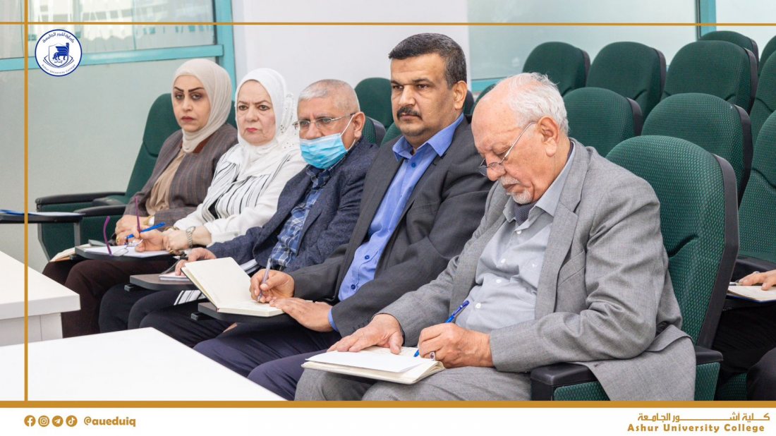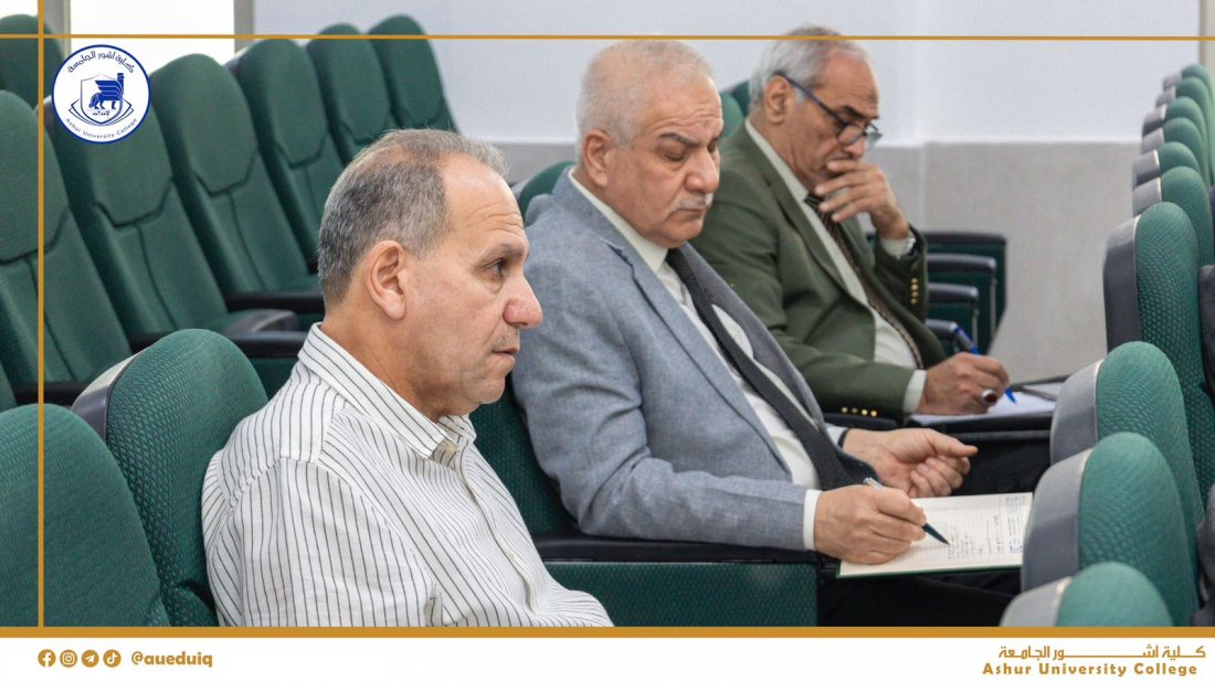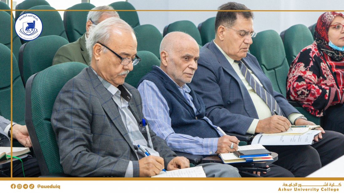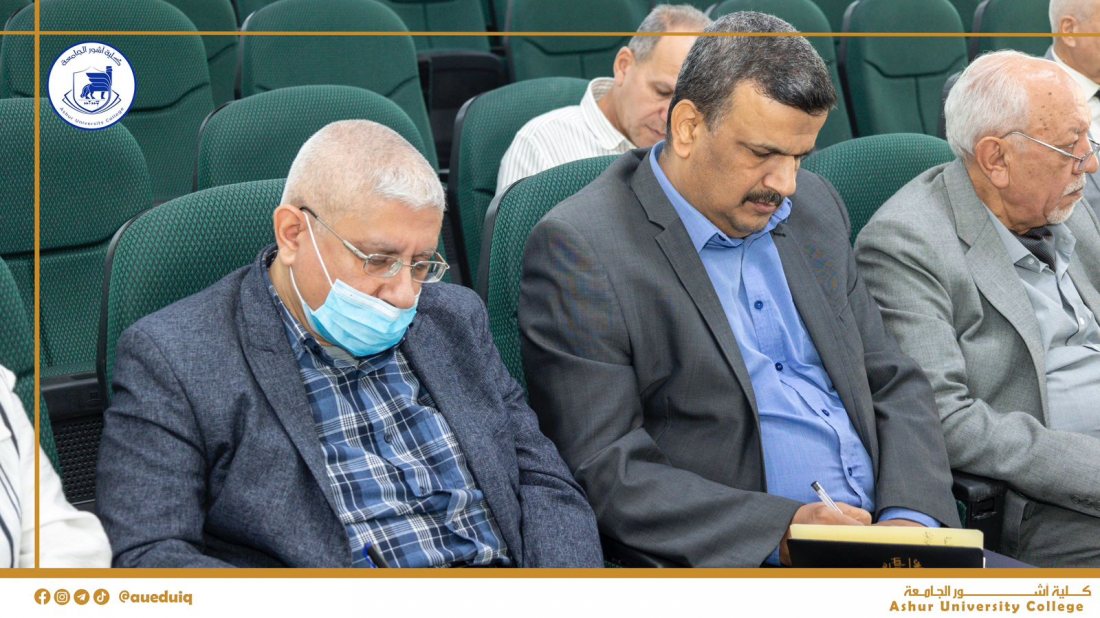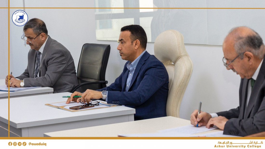 عقد مجلس كلية آشور الجامعة اجتماعه الدوري الخامس للعام الدراسي ٢٠٢٣/٢٠٢٢ برئاسة السيد عميد الكلية الاستاذ المساعد الدكتور كاظم عبود الماجدي المحترم بحضور السادة أعضاء المجلس .في بداية الاجتماع رحب السيد العميد بالحضور مهنئهم بالانتقال إلى الصرح العلمي الجديد الذي أصبح ايقونه في عاصمتنا الحبيبة ومثار اعجاب المختصين في مجال العمارة لما احتواه من بناء متطور يضاهي بناء الجامعات العالميه .بدأ السيد العميد المحترم الاجتماع بعدد من التوجيهات المهمه التي تصب في خدمة العملية التعليميه في الكلية . حيث أكد سيادته على مايلي :