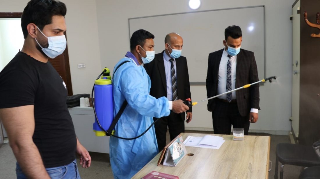 بناءا على توجيهات السيد عميد كلية اشور الجامعة الأستاذ المساعد الدكتور كاظم عبود عيسى الماجدي المحترم بالاستمرار في تعفير الكلية بكافة أقسامها العلمية والإدارية فقد باشر قسم الصيانه بتعفير قسم القانون في الكلية بحضور عدد من الأساتذة والكادر الإداري لحماية منتسبي الكلية من جائحة كورونا وتنفيذ توجيهات خلية الأزمة الصحية ووزارة التعليم العالي والبحث العلمي .