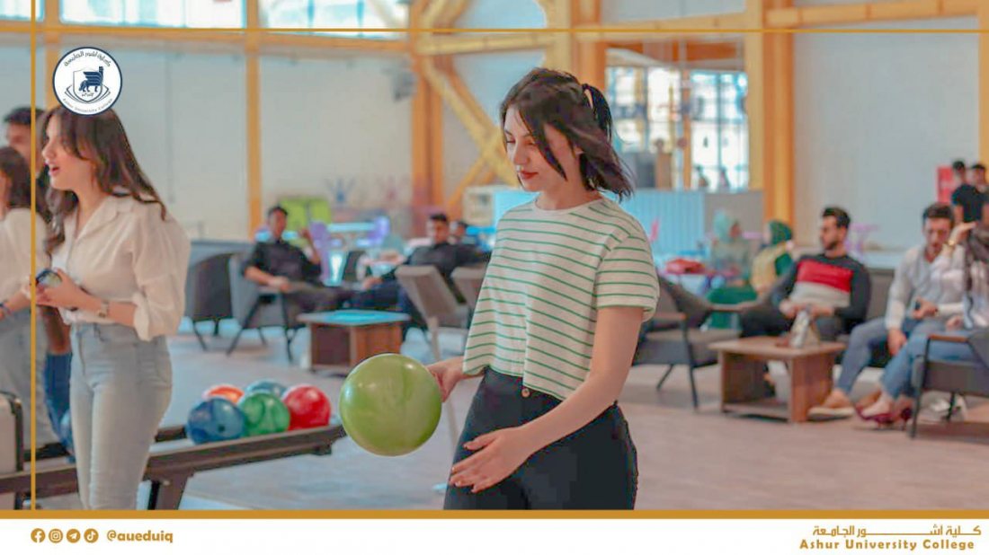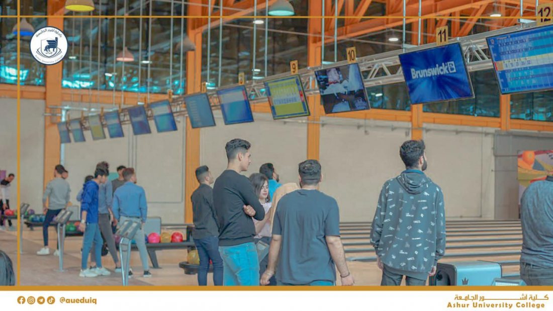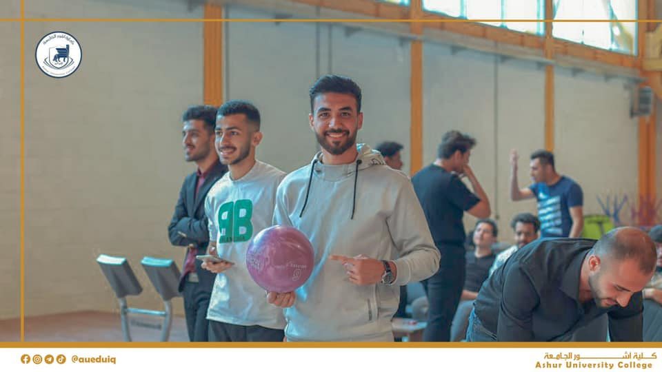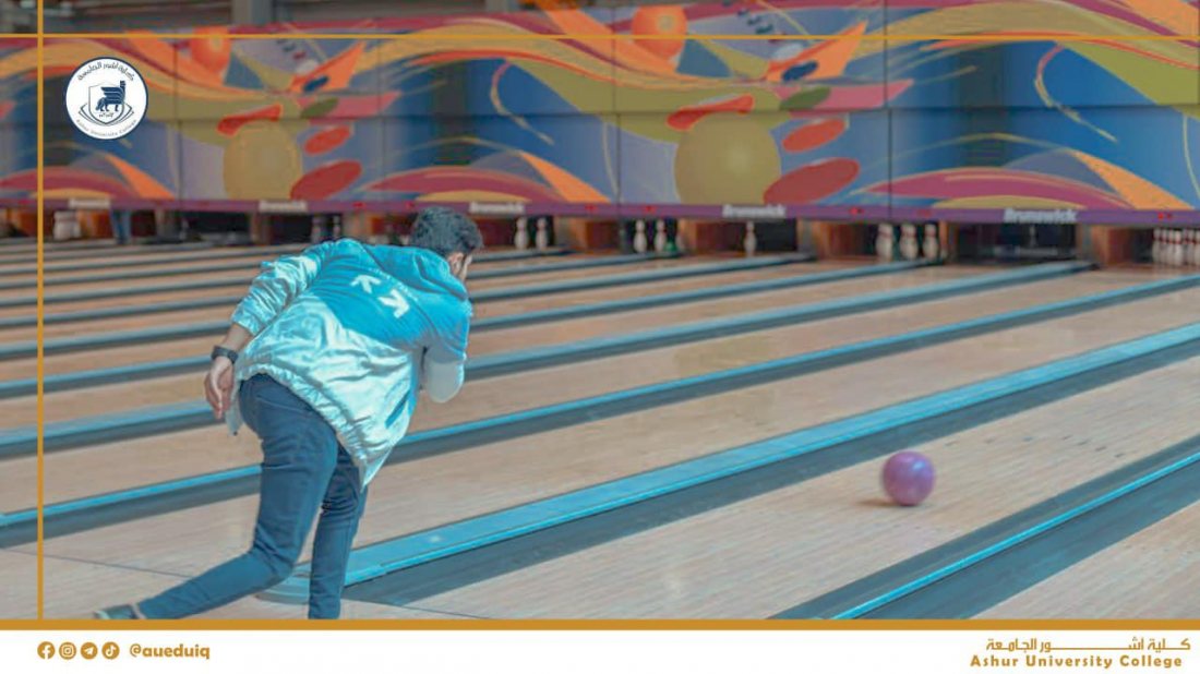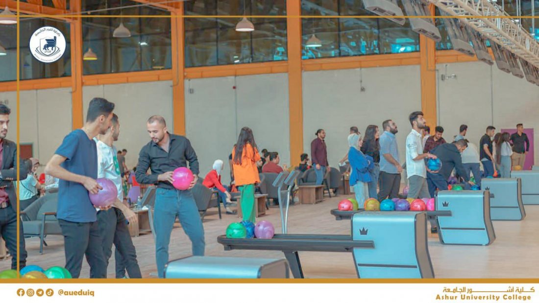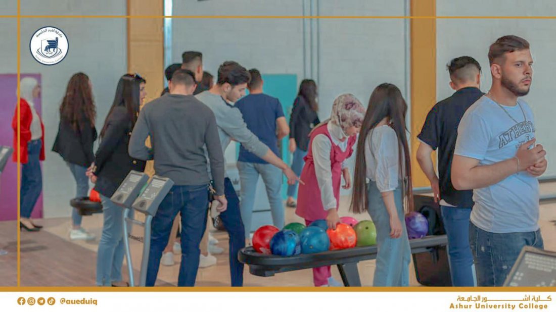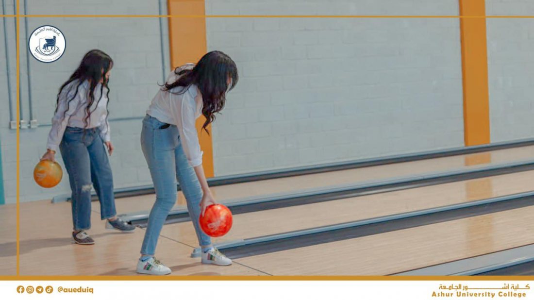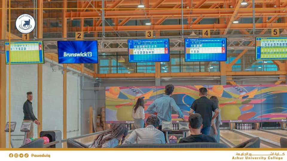 طلبتنا الأعزاء في كلية أشور الجامعة يستمتعون بوقت استراحتهم في ممارسة لعبة البولنغ في ملعب البولنغ الأولمبي في كلية أشور الجامعة