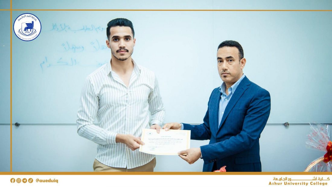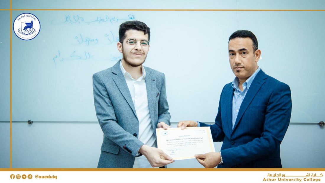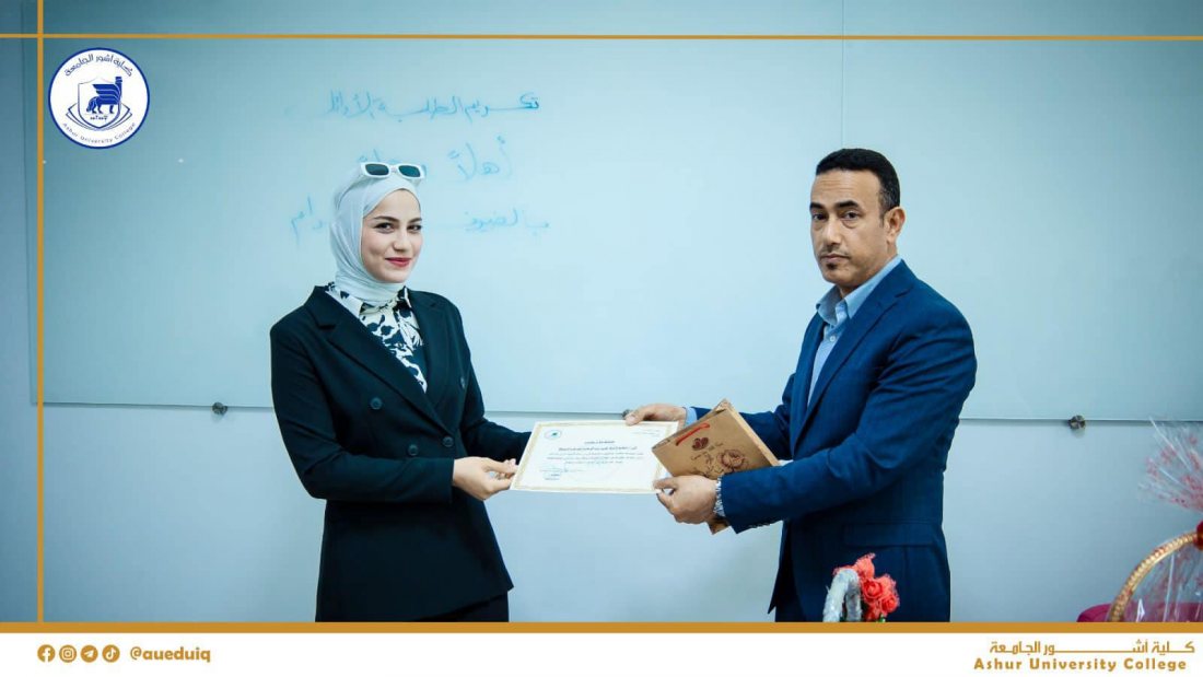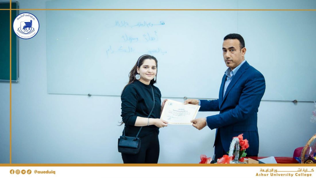 دأبت عمادة كلية آشور الجامعة على تكريم طلبتها المتفوقين الاوائل ليكونوا قدوة لزملائهم الآخرين وحافزا للابداع والتفوق فقد تم اليوم السبت الموافق ٢٠٢٣/٣/١٨ تكريم الطلبة الاوائل في جميع اقسام الكلية من قبل السيد العميد الاستاذ المساعد الدكتور كاظم عبود الماجدي المحترم خلال الحفل الذي أقامته وحدة النشاطات الطلابية /اللجنة الفنيه برئاسةم.م أمال محمود علي على قاعة الاحتفالات في الكلية .وألقى السيد العميد المحترم كلمة هنأ فيها الطلبة الاوائل مشيدا بجهودهم في التفوق من خلال الدعم الذي تقدمه العمادة والاساتذه وعوائلهم ودعاهم إلى المزيد من المثابرة لتحقيق التفوق الدائم. بعدها ألقت مسؤولة اللجنة م.م.امال محمود كلمة شكرت فيها دعم العمادة لجميع الطلبه من خلال توفير أفضل سبل النجاح والتفوق ،ثم القى احد الطلبة الاوائل كلمة نيابة عن زملائه المكرمين شاكرا العمادة والاساتذة التدريسيين للجهود التي يبذلونها مع الطلبة .وفي نهاية حفل التكريم الذي حضره السيد معاون العميد العلمي الاستاذ الدكتور غسان قاسم اللامي وعدد من رؤساء الأقسام تم منح الطلبة الاوائل الشهادات التقديرية وسط فرحة الطلبة وزملائهم بهذه المناسبة .