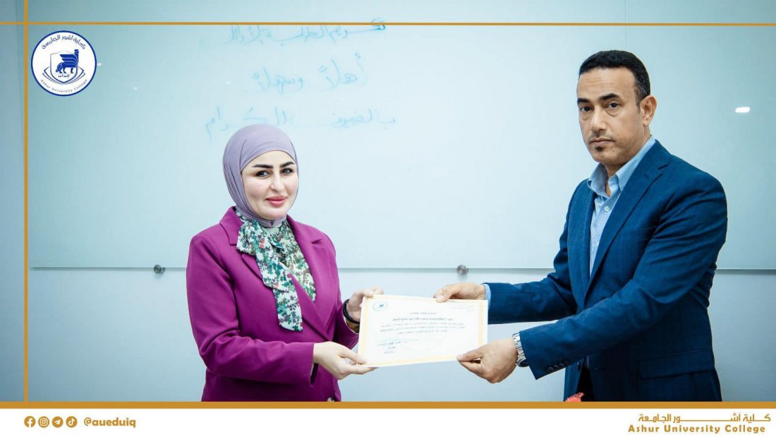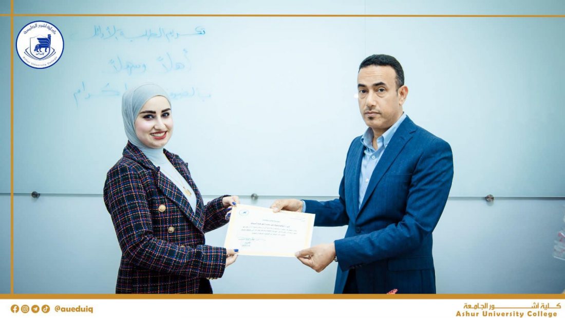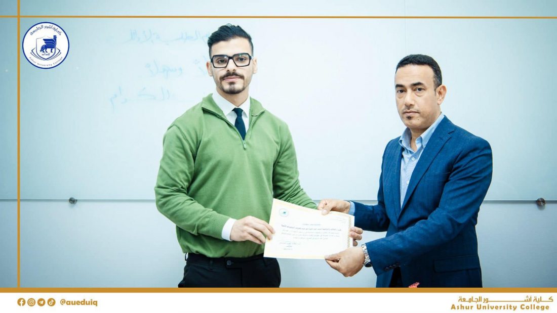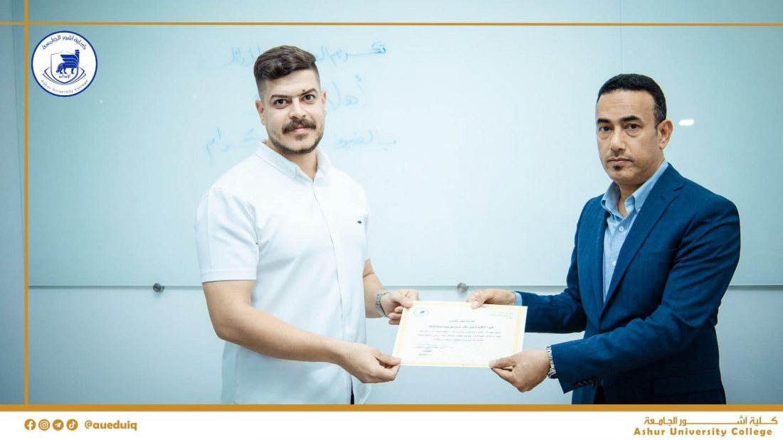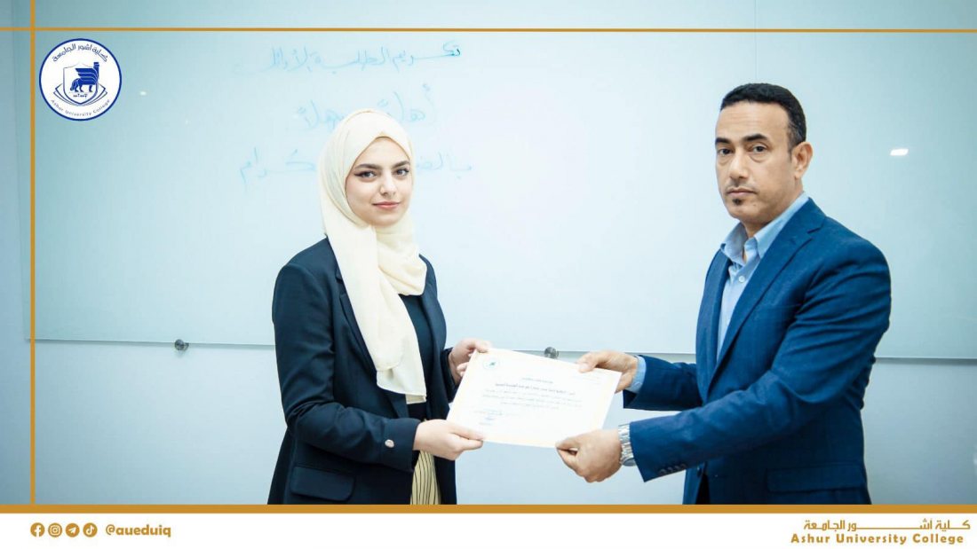 دأبت عمادة كلية آشور الجامعة على تكريم طلبتها المتفوقين الاوائل ليكونوا قدوة لزملائهم الآخرين وحافزا للابداع والتفوق فقد تم اليوم السبت الموافق ٢٠٢٣/٣/١٨ تكريم الطلبة الاوائل في جميع اقسام الكلية من قبل السيد العميد الاستاذ المساعد الدكتور كاظم عبود الماجدي المحترم خلال الحفل الذي أقامته وحدة النشاطات الطلابية /اللجنة الفنيه برئاسةم.م أمال محمود علي على قاعة الاحتفالات في الكلية .وألقى السيد العميد المحترم كلمة هنأ فيها الطلبة الاوائل مشيدا بجهودهم في التفوق من خلال الدعم الذي تقدمه العمادة والاساتذه وعوائلهم ودعاهم إلى المزيد من المثابرة لتحقيق التفوق الدائم. بعدها ألقت مسؤولة اللجنة م.م.امال محمود كلمة شكرت فيها دعم العمادة لجميع الطلبه من خلال توفير أفضل سبل النجاح والتفوق ،ثم القى احد الطلبة الاوائل كلمة نيابة عن زملائه المكرمين شاكرا العمادة والاساتذة التدريسيين للجهود التي يبذلونها مع الطلبة .وفي نهاية حفل التكريم الذي حضره السيد معاون العميد العلمي الاستاذ الدكتور غسان قاسم اللامي وعدد من رؤساء الأقسام تم منح الطلبة الاوائل الشهادات التقديرية وسط فرحة الطلبة وزملائهم بهذه المناسبة .