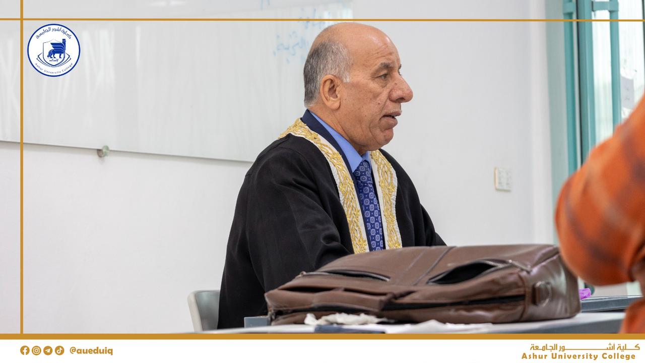 عقدت المحكمة الافتراضيه في كلية أشور الجامعة جلستها الاسبوعيه بتاريخ ٢٠٢٣/٣/٩ بأشراف القاضي المتقاعد الاستاذ نصيف الدليمي والتي كان موضوعها ((التفريق القضائي للخلاف استنادا لاحكام الماده((41 )) أحوال شخصية وتم إجراء المرافعة وادى الطلبه دورهم كمحامين ووكلاء لطرفا الدعوى وقضاة وتم توضيح الجوانب التطبيقيه في الفكر القانوني واصدرت المحكمه قرارها الذي صدق تميزا وتمت الاجابه على الاسئله المطروحه من قبل الطلبة