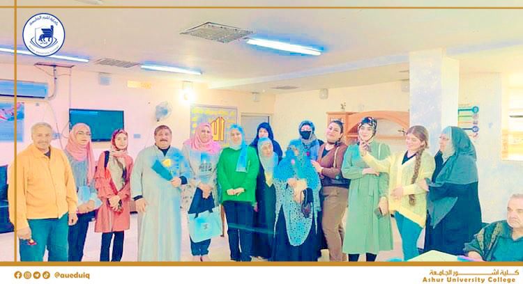 ضمن نشاطات وحدة تمكين المرأة في كلية آشور الجامعة في القيام بأعمال إنسانية ،فقد تمت زيارة دار العطاء للمسنين في منطقة الصليخ من قبل مسؤولة الوحدة م.م أمال محمود علي وعضوة الارتباط م.د زينة طارق وعدد من طالبات قسم الصيدلة حيث تم استقبالهم من قبل مسؤولي الدار والمسنين بفرح كبير وخلال تفقدهم لأحوال المسنين الصحيه تم تقديم الورود للمسنين واجراء عملية قياس ضغط الدم لهم . وبعد انتهاء الزيارة شكر مسؤولي الدار وفد وحدة تمكين المرأة كما طالب المسنين تكرار الزيارة .