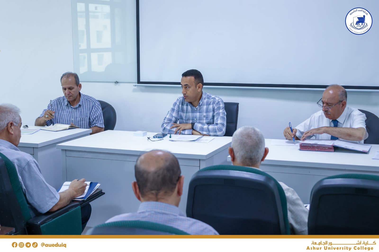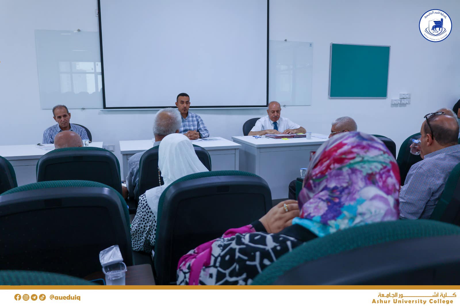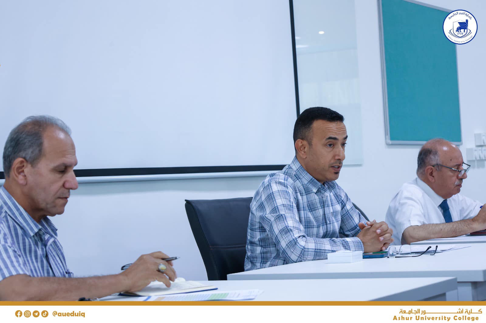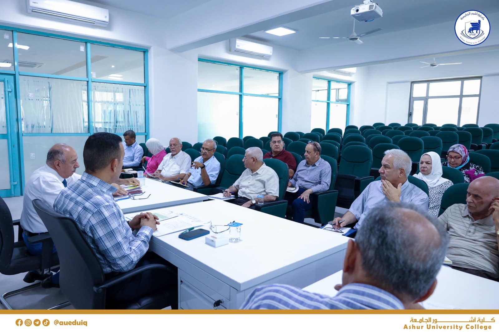The Council of Assyria College held its eighth periodic meeting for the academic year 2022/2023, headed by the Dean of the College, Professor Dr. Kazem Abboud Al-Majidi, and the respected members of the Council, and he expressed a number of directives related to scientific issues in the college:
