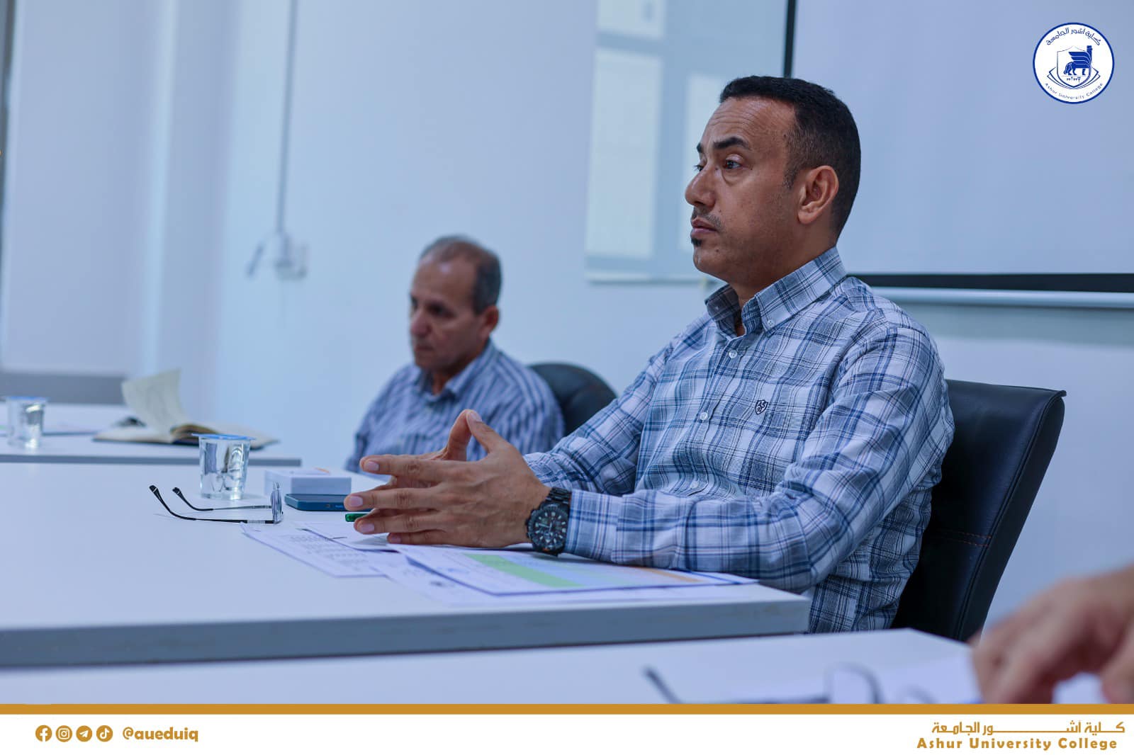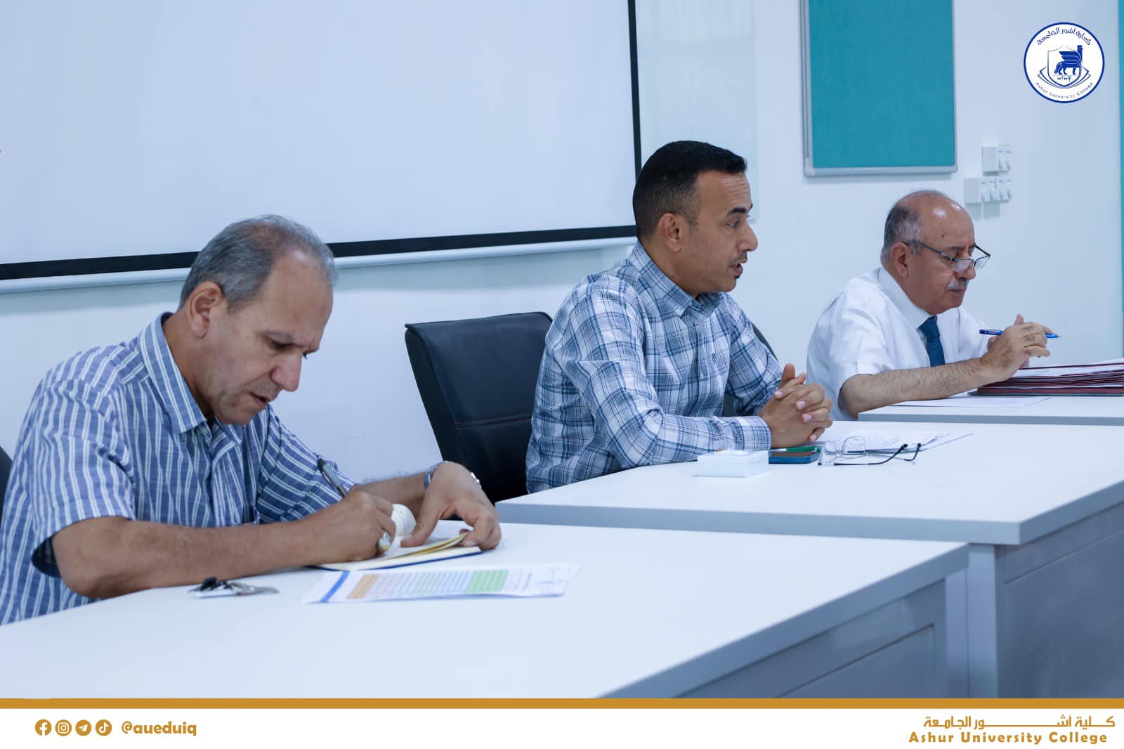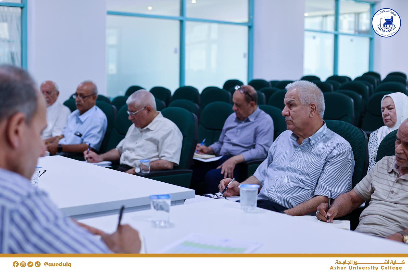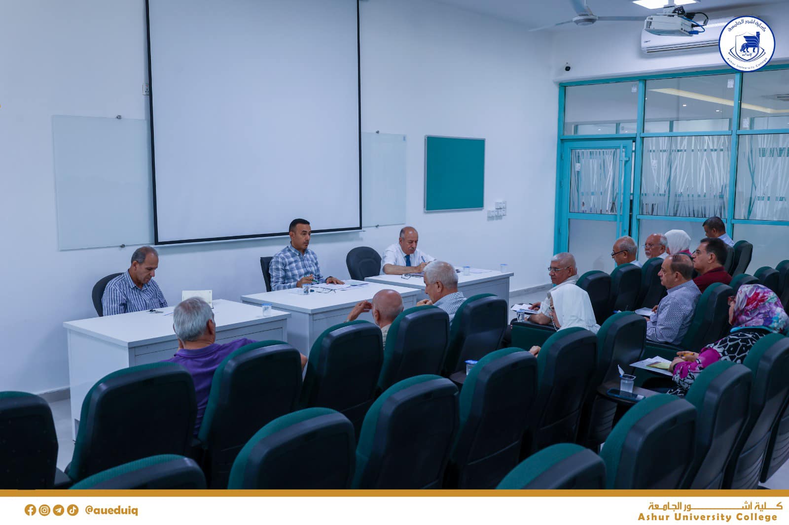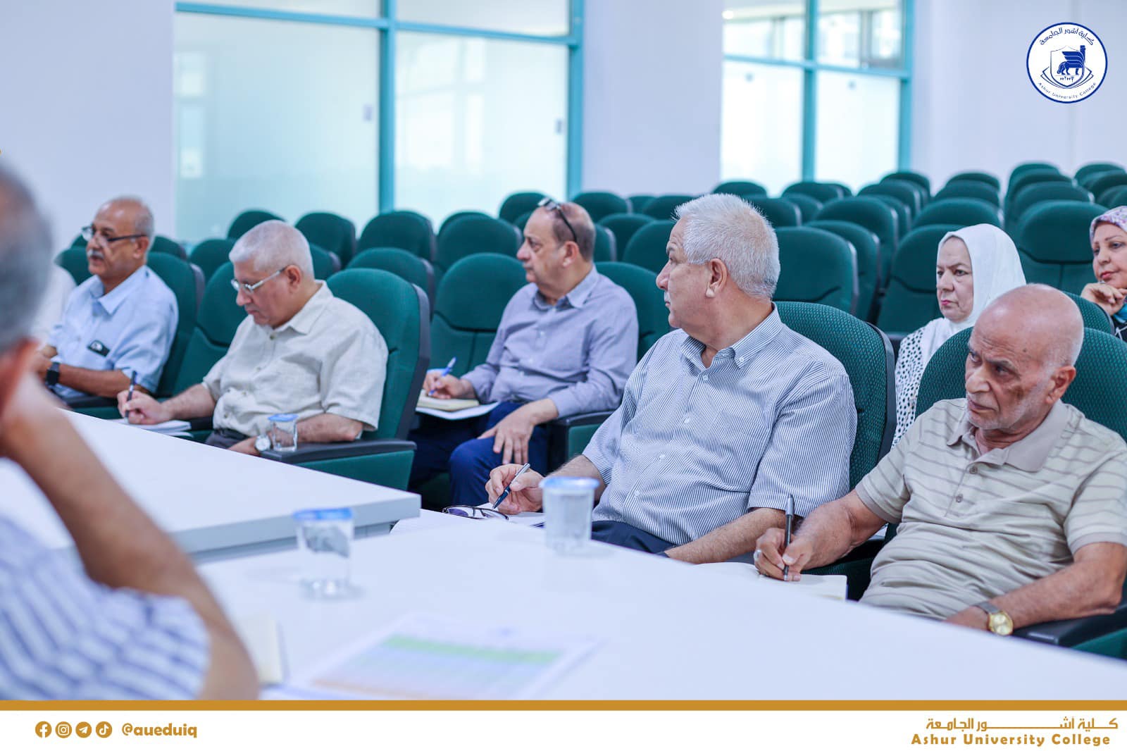 The Council of Assyria College held its eighth periodic meeting for the academic year 2022/2023, headed by the Dean of the College, Professor Dr. Kazem Abboud Al-Majidi, and the respected members of the Council, and he expressed a number of directives related to scientific issues in the college: