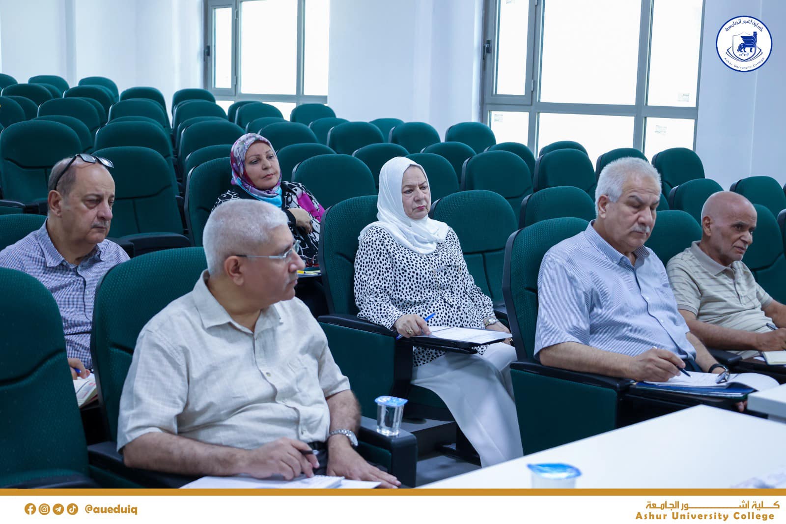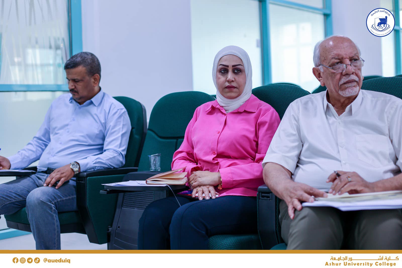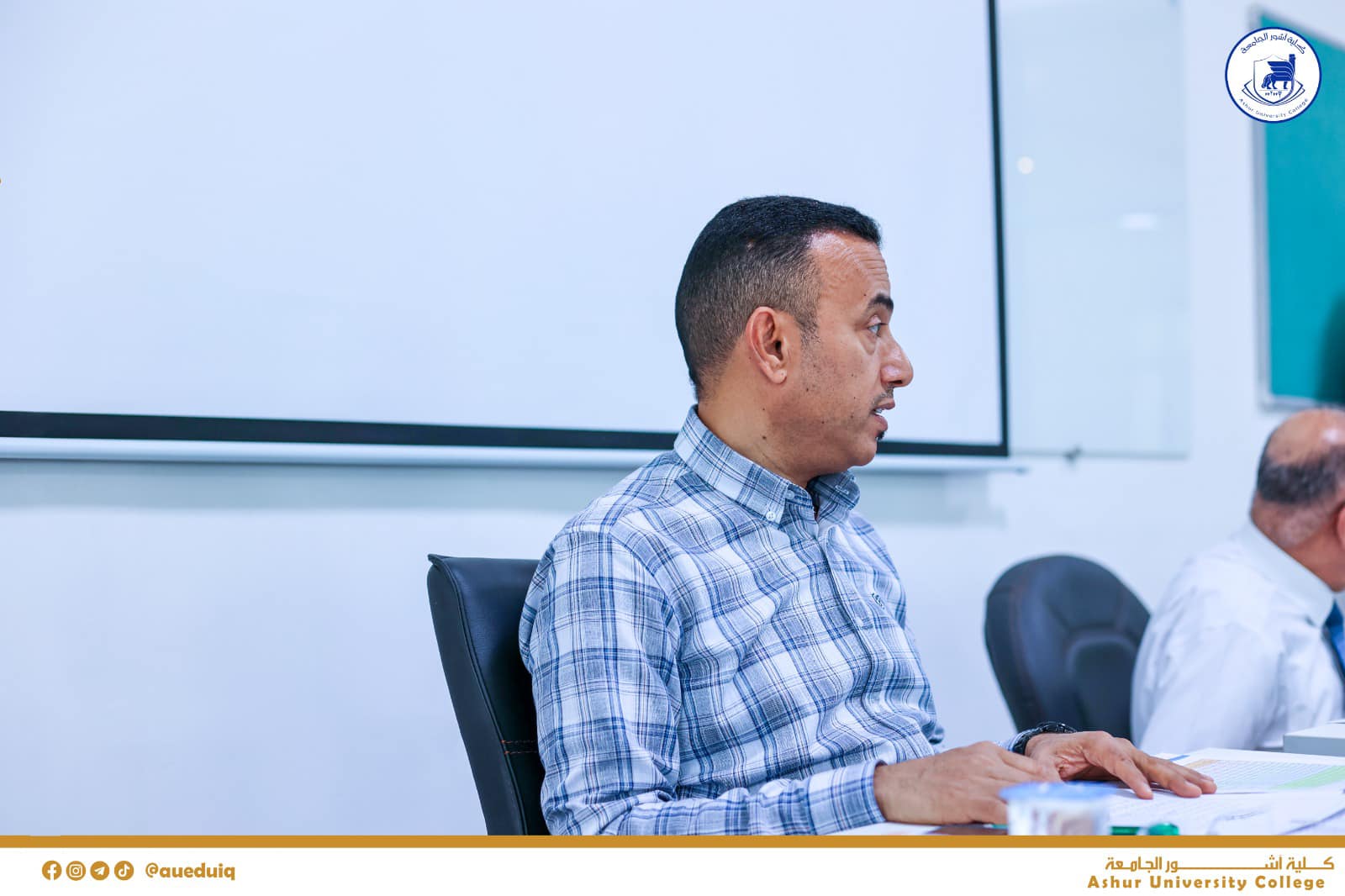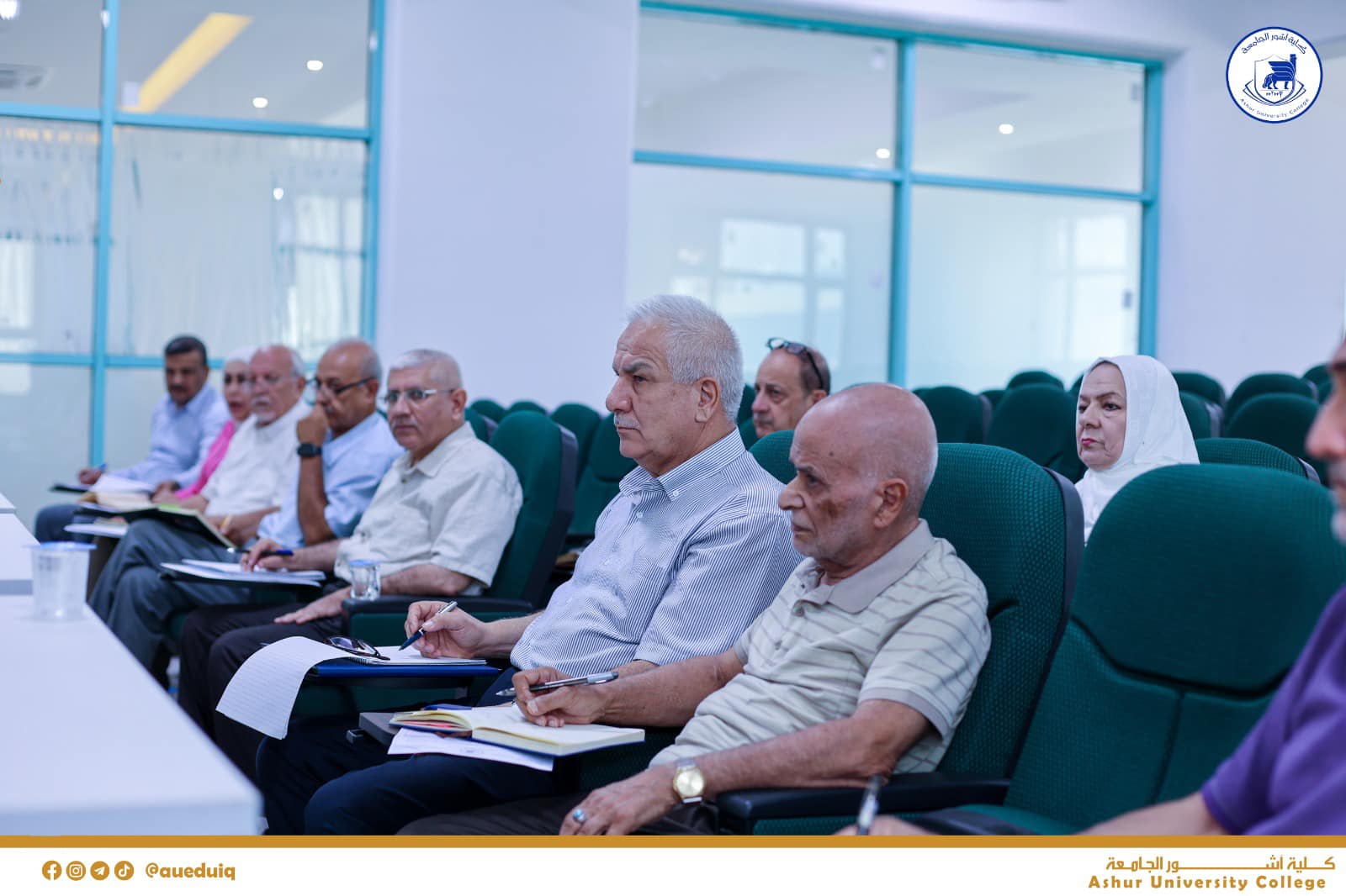 The Council of Assyria College held its eighth periodic meeting for the academic year 2022/2023, headed by the Dean of the College, Professor Dr. Kazem Abboud Al-Majidi, and the respected members of the Council, and he expressed a number of directives related to scientific issues in the college: