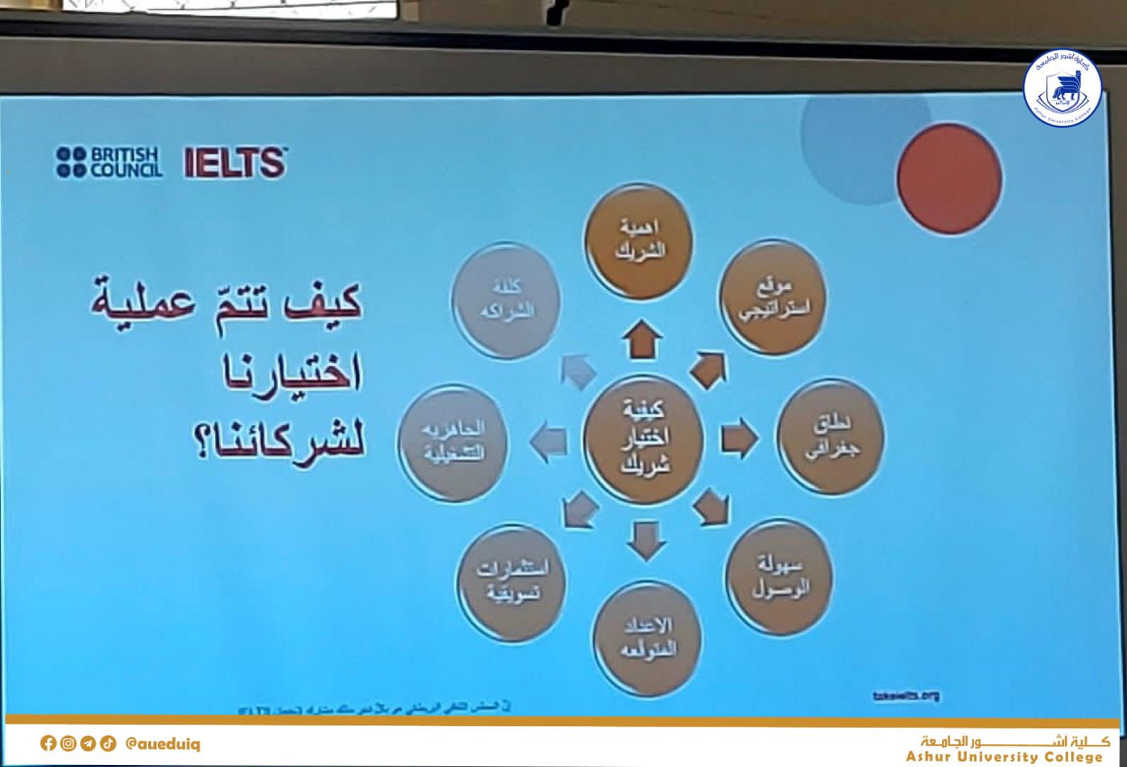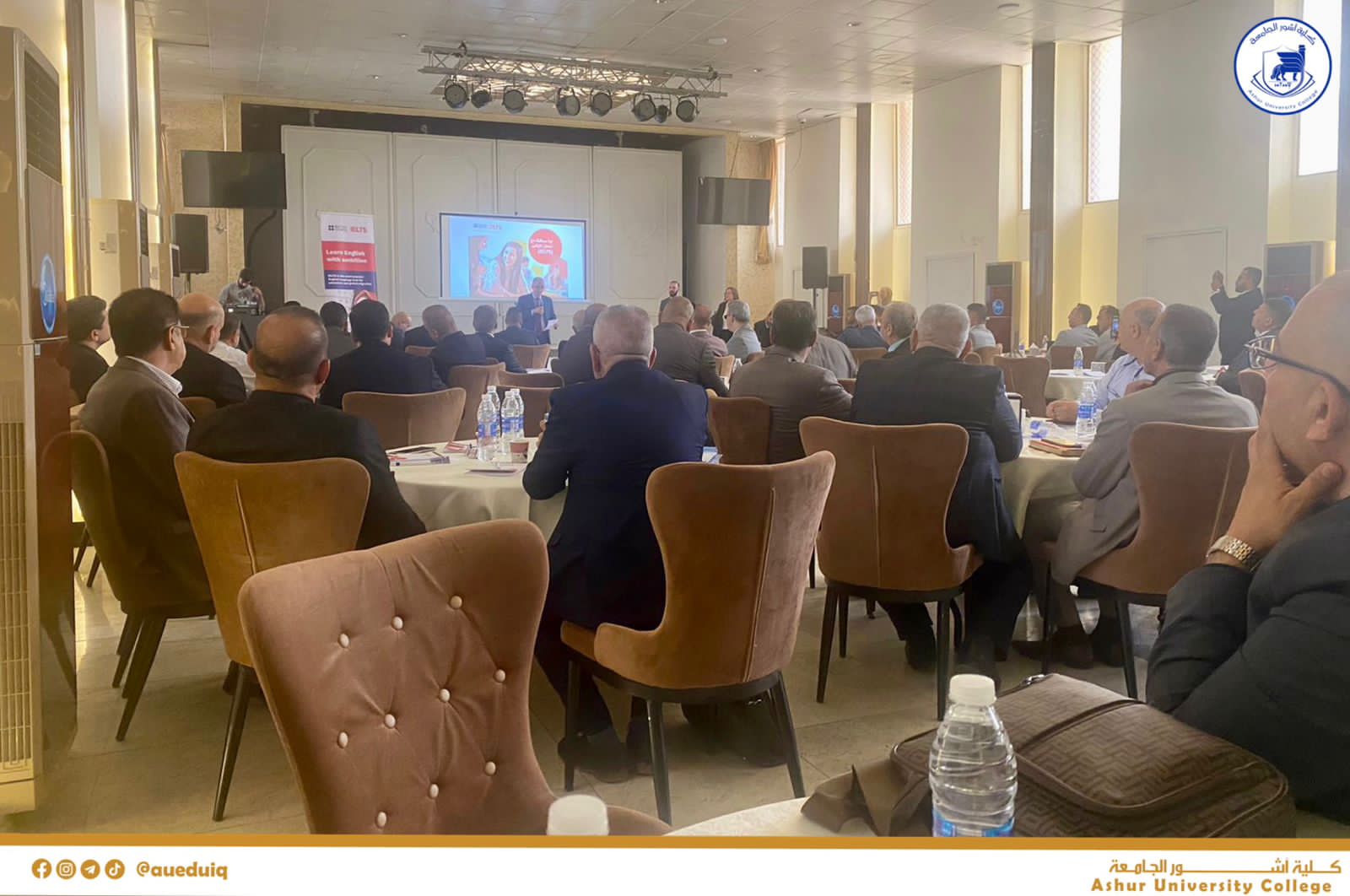 مشاركة السيد معاون عميد كلية آشــــــــــــور الجامعة للشؤون العلمية الاستاذ الدكتور غسان قاسم اللامي والتدريسية آمال محمود من قسم هندسة الطب الحياتي في مؤتمر إفتتاح مراكز اختبارات اللغة الانكليزية IELTS الذي اقيم اليوم الاثنين المصادف 2023/7/31 بحضور السيد وكيل وزارة التعليم العالي والبحث العلمي لشؤون البحث العلمي وعدد من ممثلي الجامعات والكليات الحكومية والأهلية