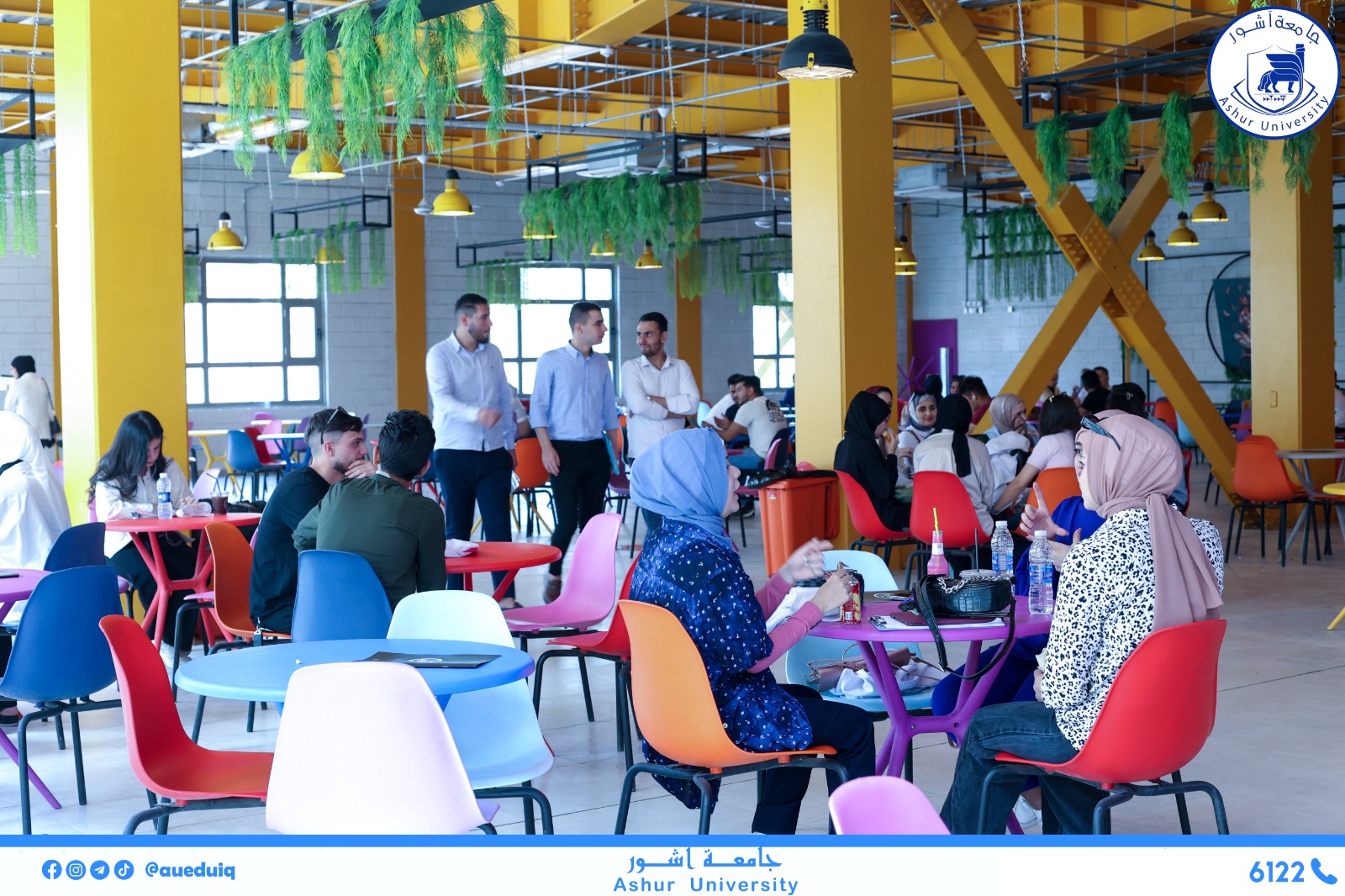 The presence of our dear students today, Monday, October 2, 2023, in the student club of Assyria University, which includes the most important local and regional food and catering agencies. All the best and lasting success, our dear students.