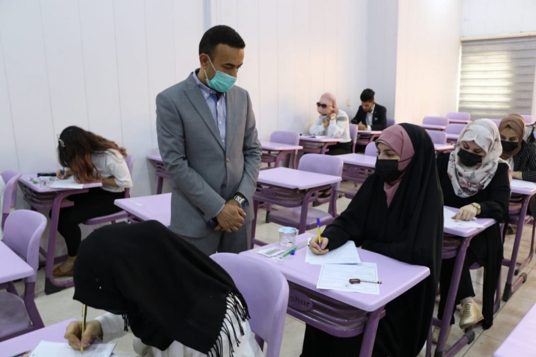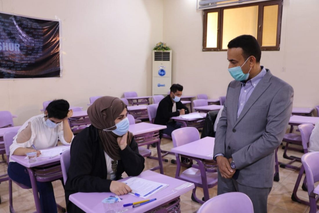 اندفاع كبير وحضور متميز من أجل النجاح والتفوق لطلبة كلية اشور الجامعة لتأدية الامتحانات العملية لنصف السنة للعام الدراسي ٢٠٢٠-٢٠٢١ حيث جرت اليوم الخميس الموافق ٢٠٢١/٤/٨ الامتحانات العملية لطلبة قسمي الصيدلة وإدارة الأعمال والتي اتصفت بحضور متميز من قبل الطلبة .كما زاد هذا الحضور القا تواجد السيد عميد كلية اشور الجامعة الأستاذ المساعد الدكتور كاظم عبود عيسى الماجدي المحترم بين أبنائه الطلبة مستفسرا منهم عن طبيعة الامتحانات والتوجيه بتوفير كل ما يحتاجه الطلبة داخل القاعات وهذا الاهتمام أعطى للطلبة اندفاع كبير لتحقيق التفوق كما تابع الامتحانات أيضا إلى جانب السيد العميد السيد المعاون العلمي الأستاذ الدكتور غسان قاسم اللامي والسادة رؤساء الأقسام. وأثناء متابعته أكد السيد العميد على الالتزام بتوجيهات خلية الأزمة الصحية ووزارة التعليم العالي بخصوص جائحة كورونا وتأكيده على حضور الطلبة قبل وقت مناسب من بدء الامتحان وارتداء الزي الموحد .