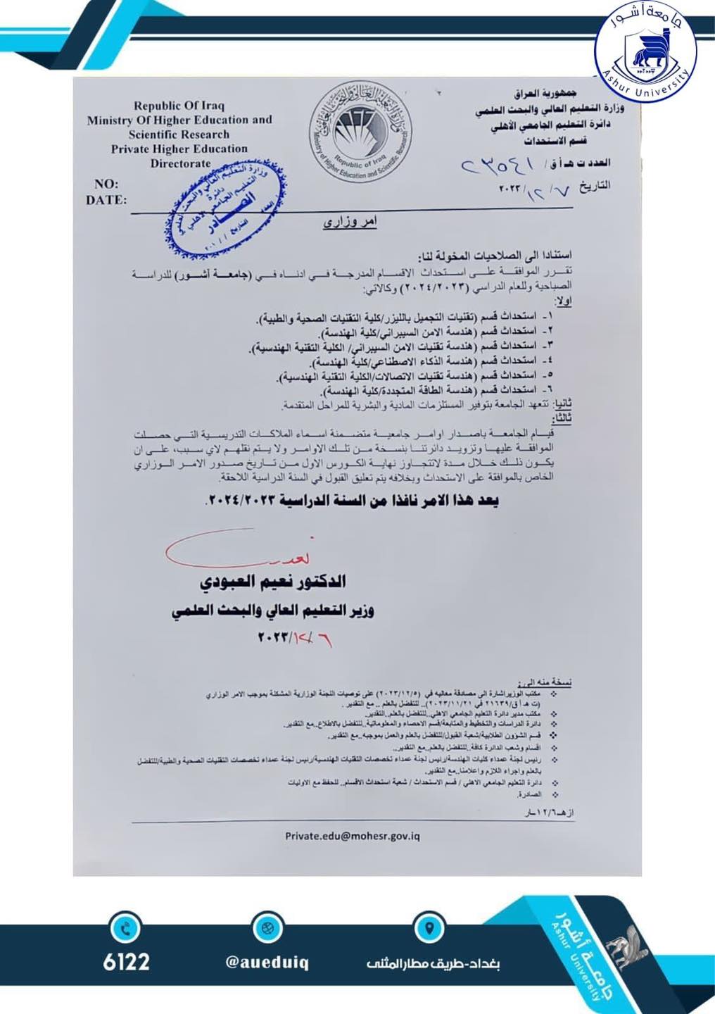 الأقسام المستحدثة الجديدة في جامعة آشــــــــــــور يمكنكم التقديم عليها الان: